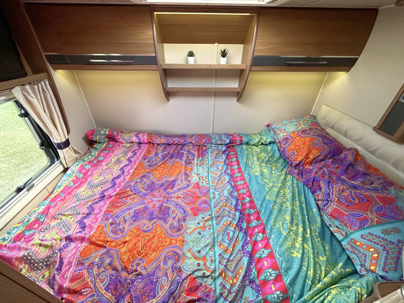 If you can't be bothered to make up a bed and put it away each day you will be pleased to know that this Chieftain has a fixed rear transverse bed which is easy to get in to.