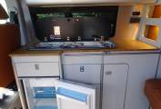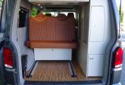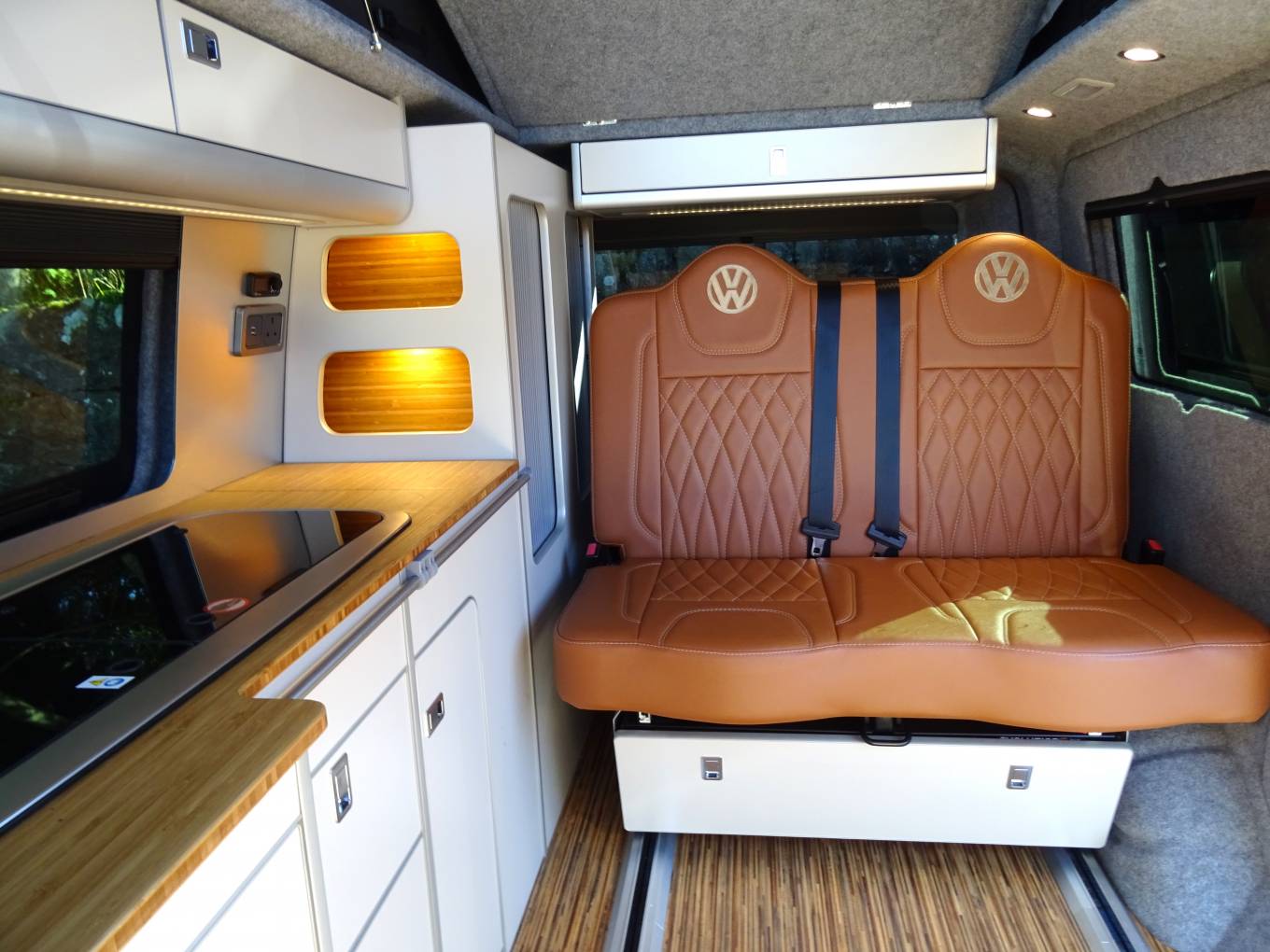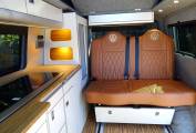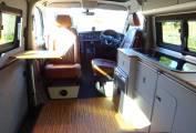 It's a 4 berth, 4 belted campervan with a sliding R&R bed and a second double bed above in the forward facing pop-top roof.