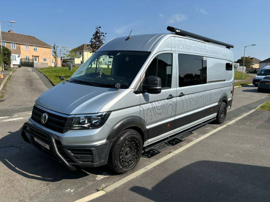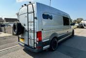 Motorhome Depot Cornwall are proud to present this 2018 VW Crafter professional van conversion that is a 4 berth 3 belt camper in a standout silver and comes with Cab Air Con amongst many extras listed below. The conversion was professionally done to a very high standard by Marlin Van Conversion who have done a fantastic job creating this beautiful and well thought out designed camper.