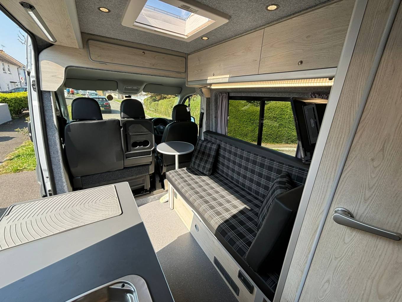 Powered by a 2.0 Litre Diesel engine with a 6-speed manual transmission the Camper Measures just 6.9metres in length and can be driven on a standard UK license. It is also worth noting the timing belt & water pump was also changed on the 7th of August 2023, has a perfect MOT record to date and the VW Crafter is registered as a Motor caravan which will help this Crafter stand out from the crowd!