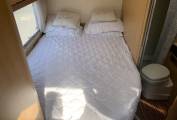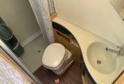 In half dinette there are 2 travelling seats, with full seatbelts and by use of the 2 swivel seats, up front, a nice area for entertaining is created. A 3rd bed can be created using the small sofa next to the habitation door, dinette seats and table.