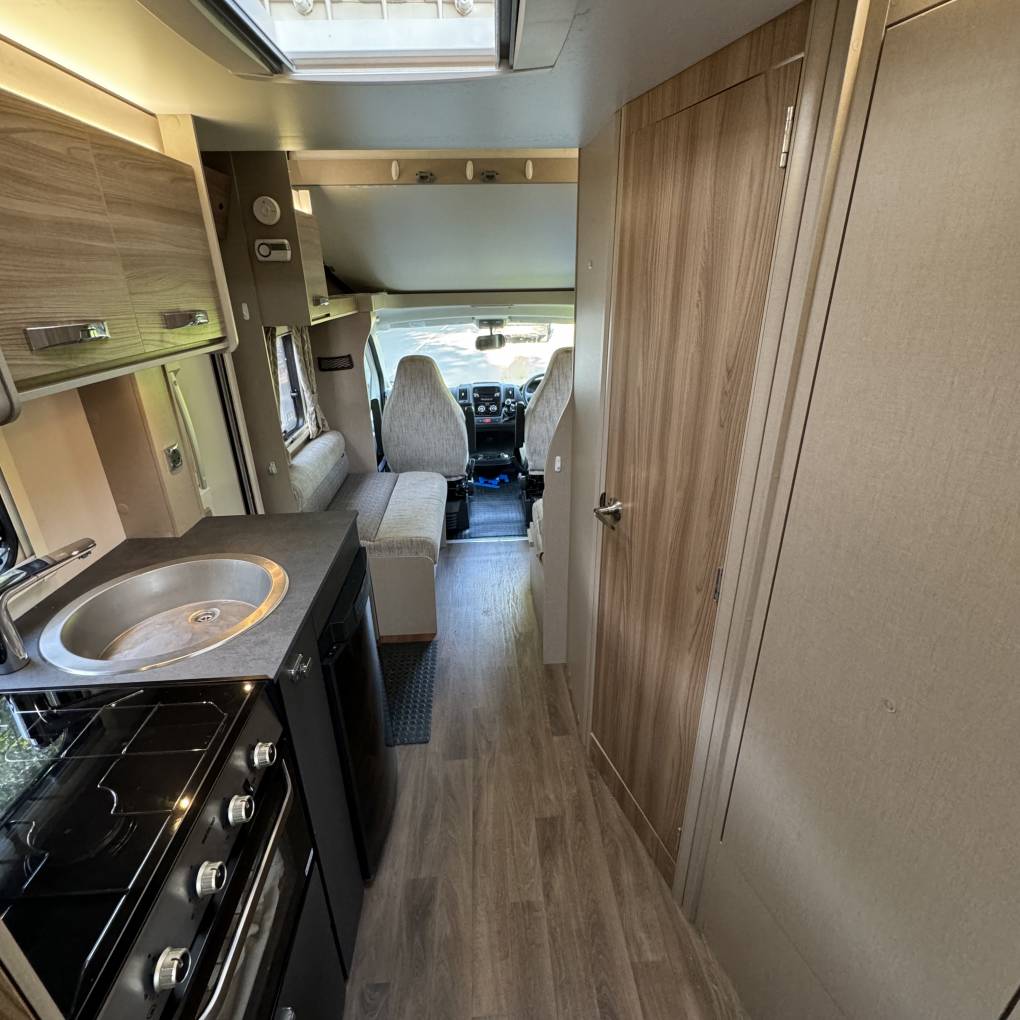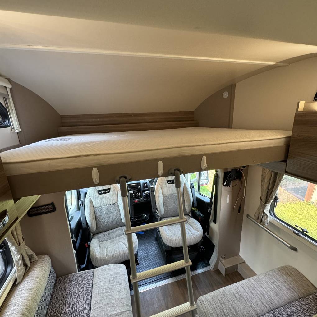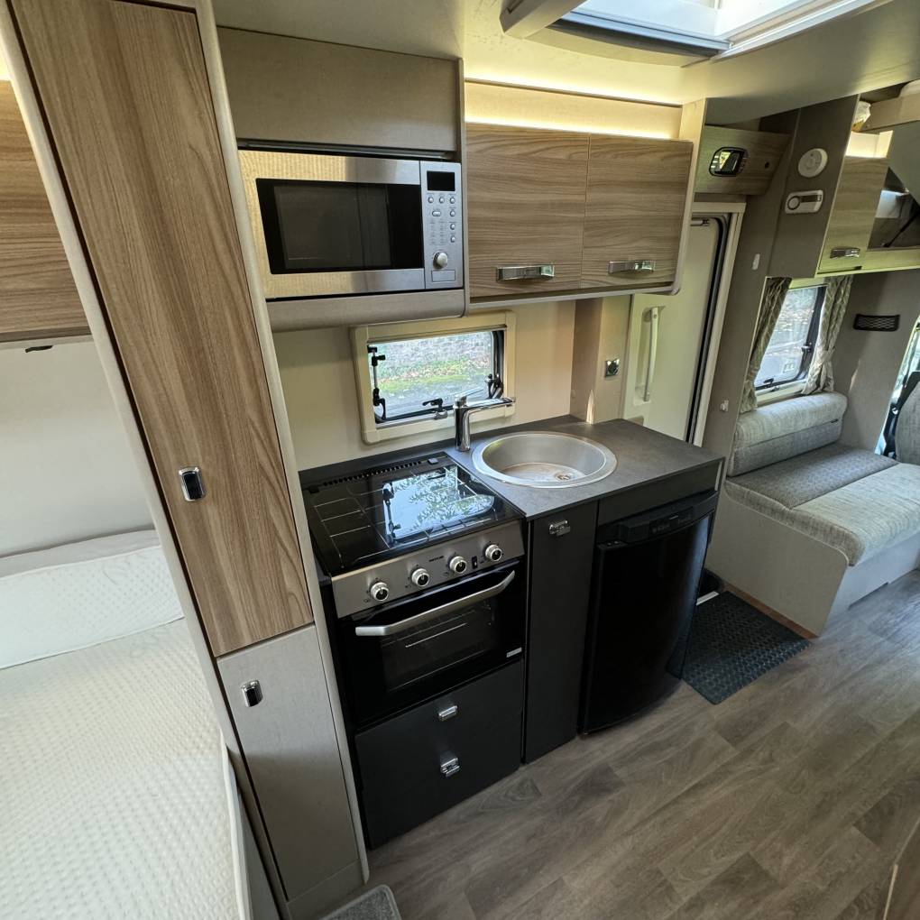 Welcome to the sale of this stunning Swift Edge 494. Travelled only 5,032 miles since it’s registration in September 21. The Edge 494 is perfect for a family of four or a couple as it benefits from a fixed bed to the rear and a living area to the front near the cab. The front lounge is made up of 2 rear travelling seats, a side bench and the front captain chairs which create a spacious area for up to 6 people! Over the cab you will find a large double bed, which is accessible by a ladder and don’t interfere with the living area if other people were relaxing in the night-time. To the middle you will find all home comforts which include an Oven, Grill. Hob with 3 Gas Burners and 1 Electric Hob, under counter Fridge with Freezer Compartment, Microwave, Worktop Extension and a great amount of storage for your kitchen essentials. The rear bedroom provides you with a stunning transverse island bed configuration!