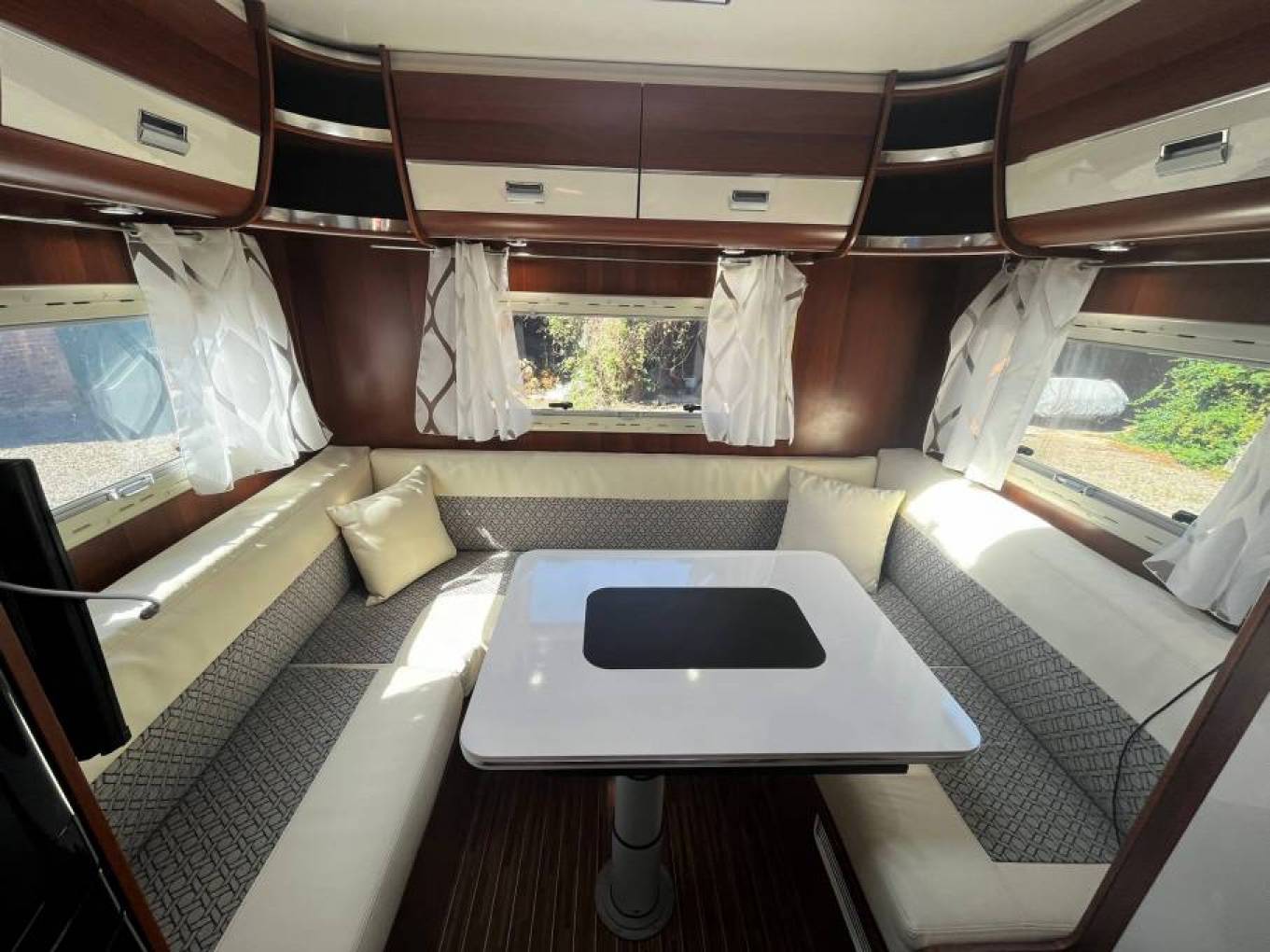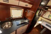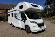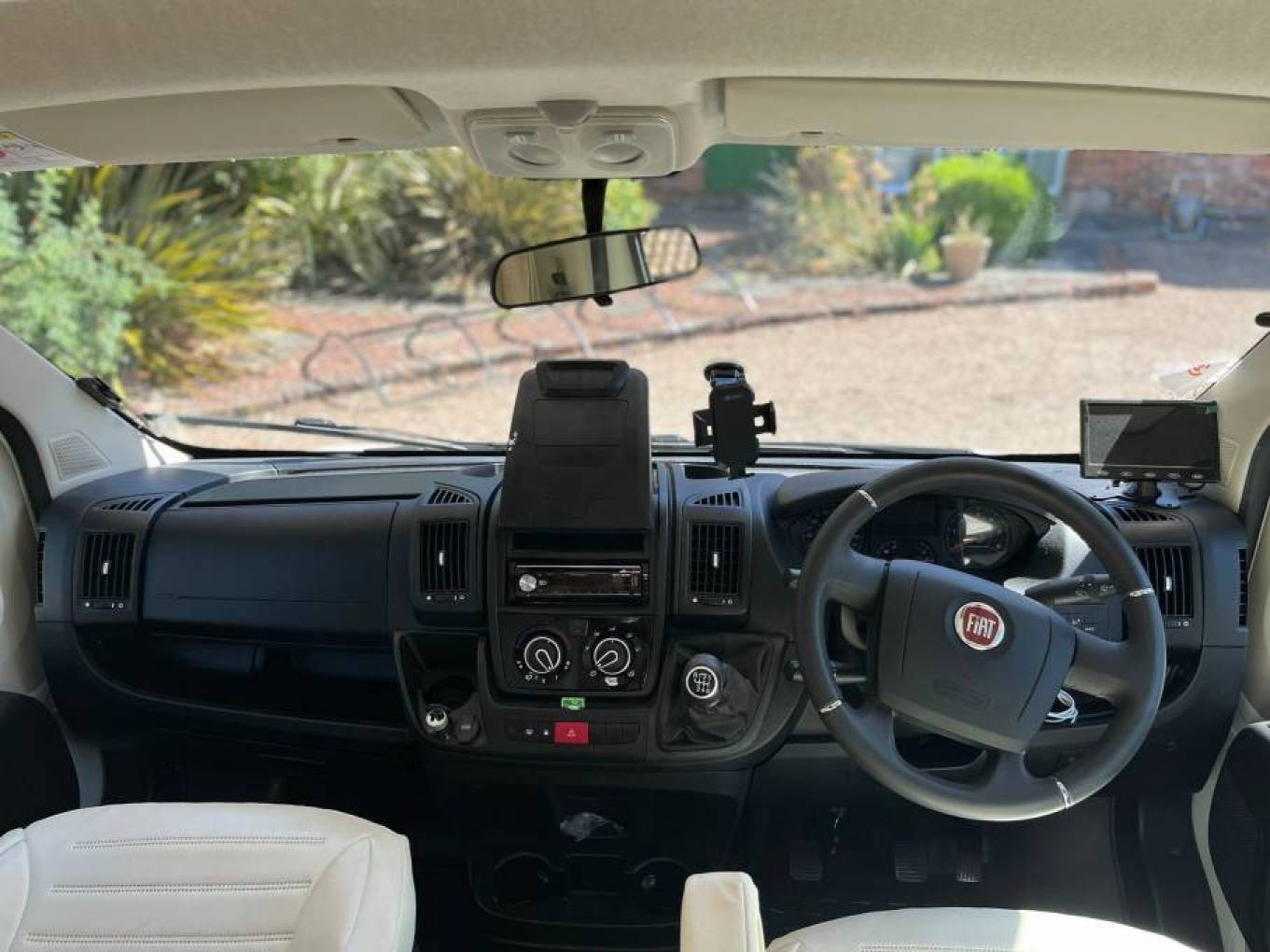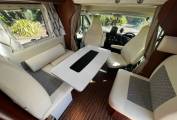 Combining comfort and style this motorhome is perfect for family getaways or short trips away. Mahogany panelling is offset by white cupboard inserts to create a stylish and bright interior.