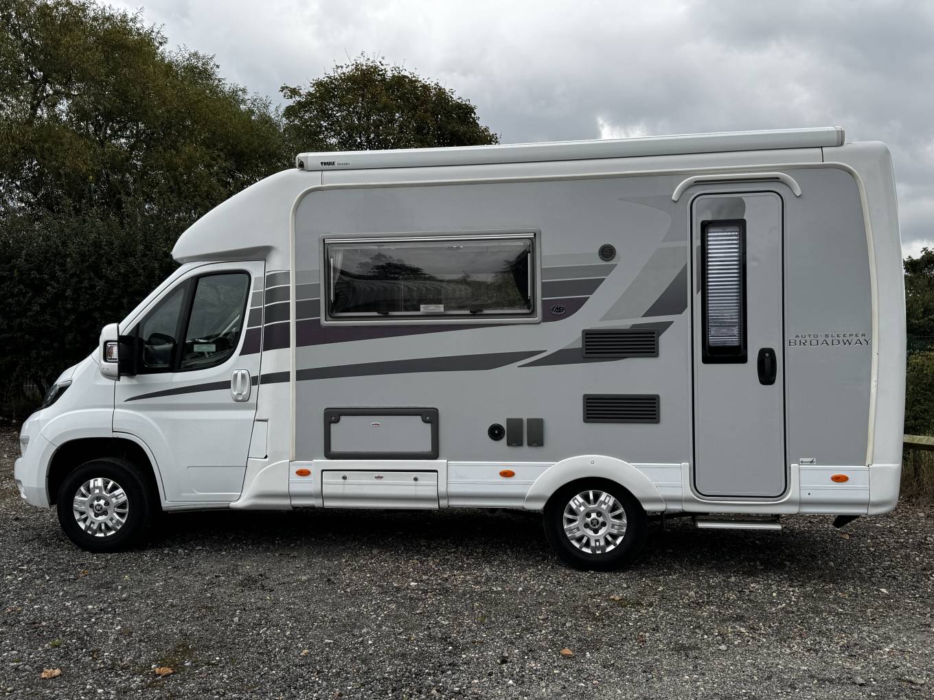 The Auto-sleeper Broadway EK 2017( 67) a luxury 2 birth motorhome with all the refinements we come to expect from the auto-sleeper range, this particular Broadway is in fantastic condition has low mileage and has clearly been looked after by its owners with full service history and habitation checks all complete an early viewing is highly recommended.