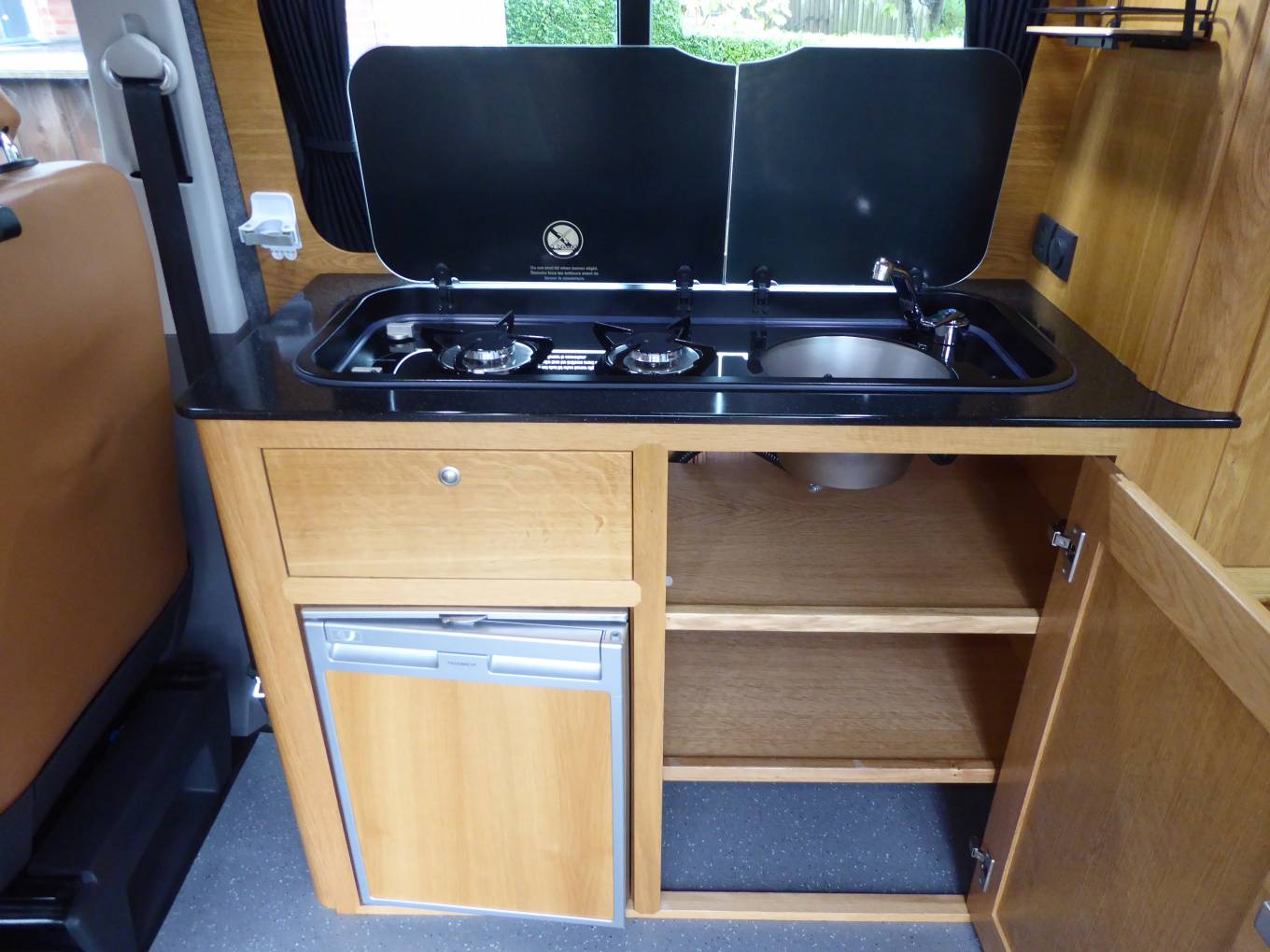 seats, 2 gas burner hob, fridge, Euro 6, 147bhp engine, cab air con, 6 speed gearbox,