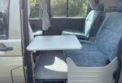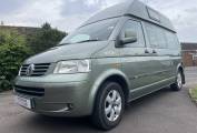 Here we have a grown ups version of a Vw campervan. This is a Vw T5 campervan conversion by Bilbos that has a high roof, so no crouching required, comes complete with onboard toilet and sink facilities, oven/ grill, fridge freezer and has been upgraded with a night heater that will also give you hot water from the tap.