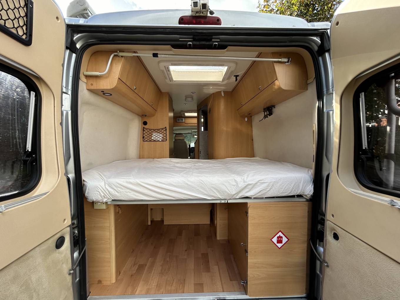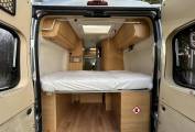 At the rear of the campervan, you will find a good sized double bed with generous storage underneath, cleverly folding up when not in use to provide a huge storage area for transporting large goods when needed. Moving forward you will find the practical washroom with Thetford cassette toilet, wash basin and shower. Adjacent is a well equipped kitchen including a sink with mixer tap, 2 burner gas hob, grill, fridge and plenty of storage. In the heart of the campervan you will find the dinette area which has 2 3 point seatbelts fitted so that the vehicle can travel up to 4 occupants in safety. This area converts to provide a single sleeping area if required. The front seats swivel round to provide further seating so that 4 guests can dine in comfort. The table can be removed and fits to the external rail for al-fresco dining. Warm air heating, a hot water supply and a generous amount of storage lockers are located throughout the vehicle.
