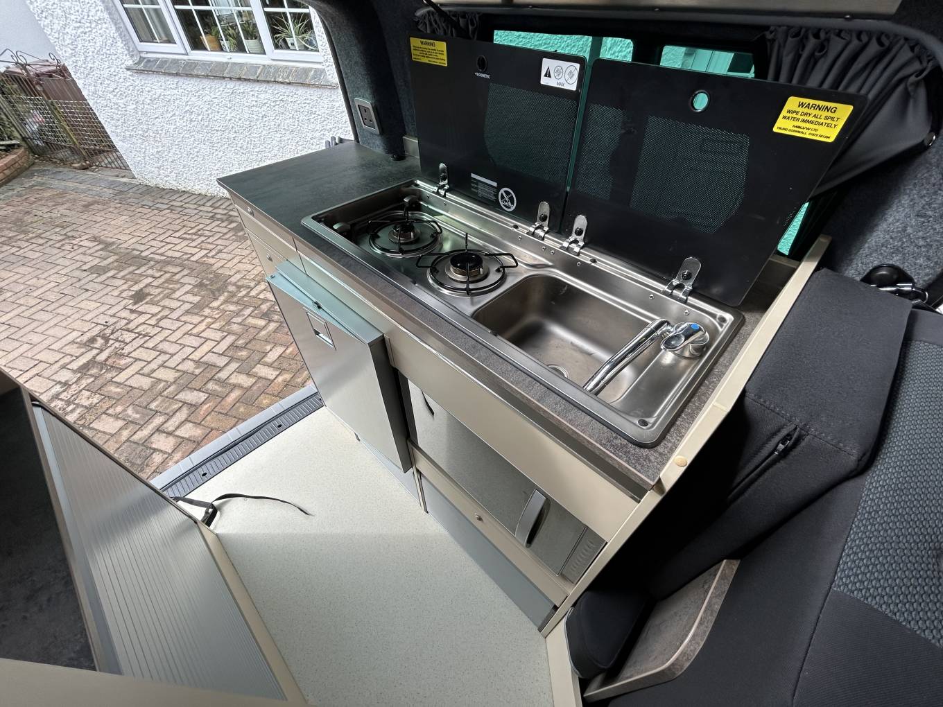 Front Seats, Wind Out Thule Canopy, Outdoor Chairs and Table, Bike Rack for 2