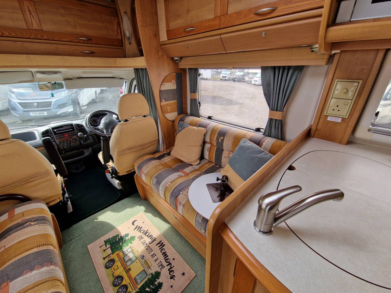 The Cab area is clean and tidy and both seats swivel around into the lounge area.
