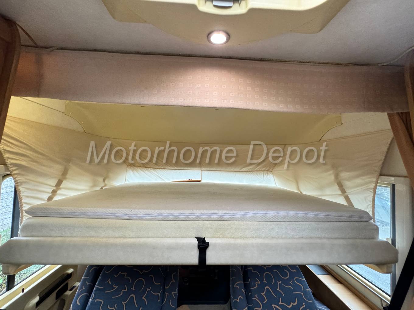 Finally over the cab is a full width double bed that manually drops down over the front seats.