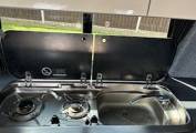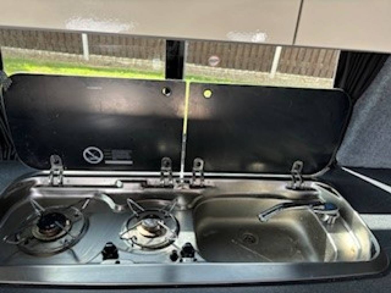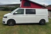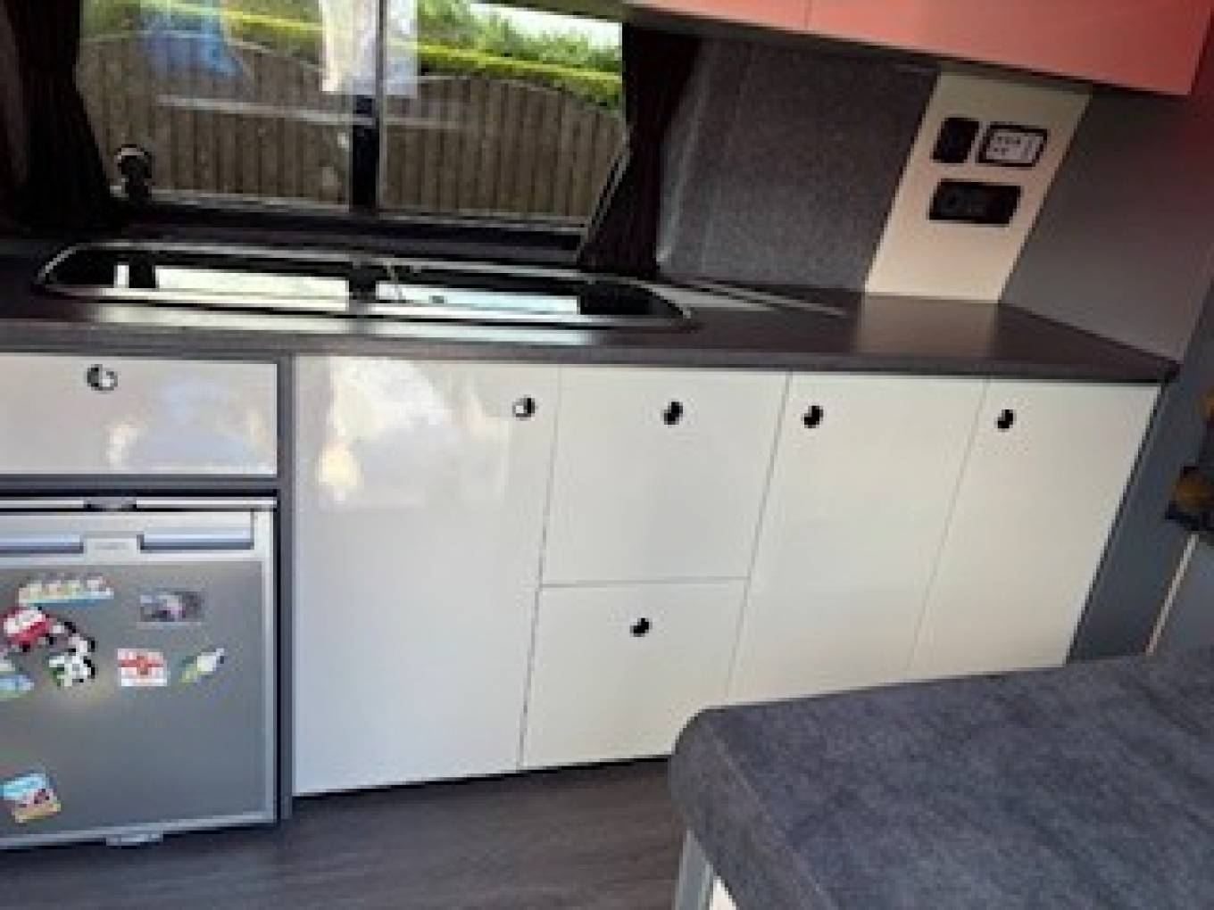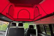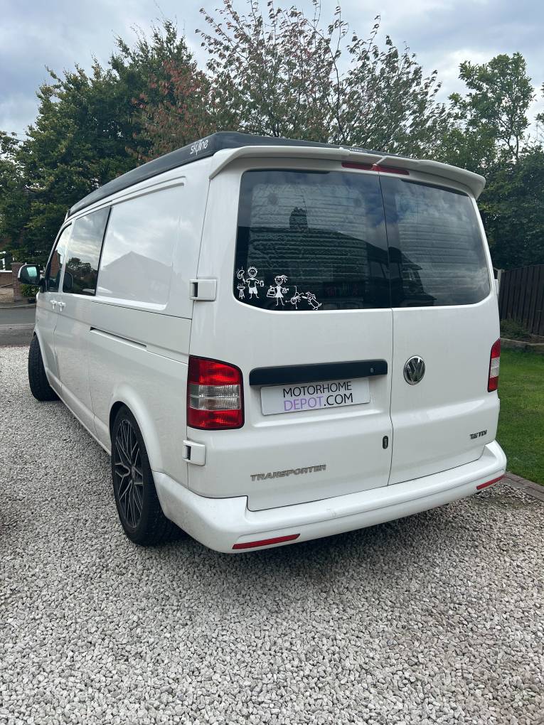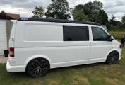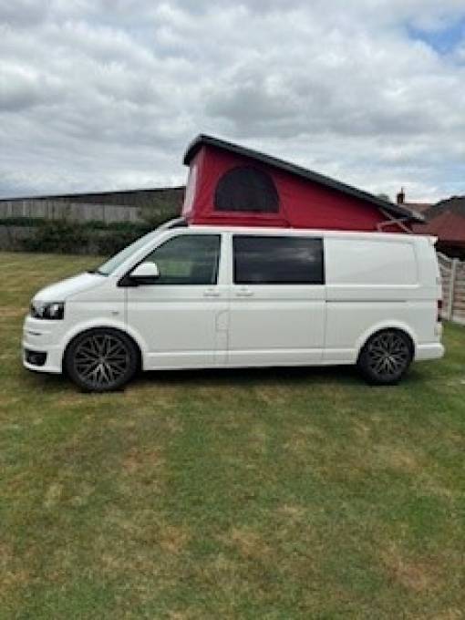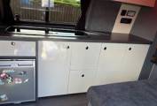 Here we have a VW T32 with 117711 miles on the clock, 2litre 140Bhp. This different layout than usual gives you more space and a really nice seating area at the rear, you can enjoy a meal or simply relax in this space. there is plenty of storage so you can have everything at hand. The pop up gives you the extra sleeping area and the roof unzips so you can enjoy the view. The 3 front seats all have belts, and the double seat is a captain seat. The cab has aircon, electric windows and wing mirrors. The kitchen has a gas hob 12v fridge, plenty of workspace, storage, sink and tap, all power comes from the 240v plug in point or the 12v leisure batteries. The Alloy wheels, white trims and black roof gives this VW a great look. he conversion was completed by Cosmic Campervan, This VW can be viewed near Retford by appointment only.