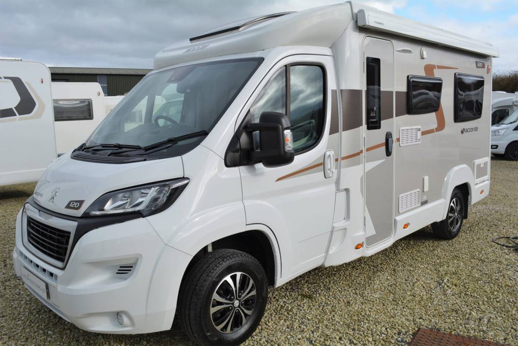 2021 Elddis Accordo 120 2 berth compact motorhome for sale. Measuring just 5.99m in length (plus bike rack if required) which makes driving and parking extremely comfortable. Presented in beautiful condition with a host of fitted equipment making this Elddis 2 berth motorhome very desirable indeed. The specification includes a Peugeot Boxer 3500kg chassis which can be driven on a standard car license, alloy wheels, solar panel, external BBQ point, color coded body, reverse camera, bike rack, spacious rear lounge, double bed conversion, washroom, fully equipped kitchen with microwave, twin swivel chairs, cab shades, cab air conditioning, cruise control, heating and hot water, on board water tanks and much more. Sale includes gas certificate, mechanical service and 1 years warranty. Finance available. Please call for further details...