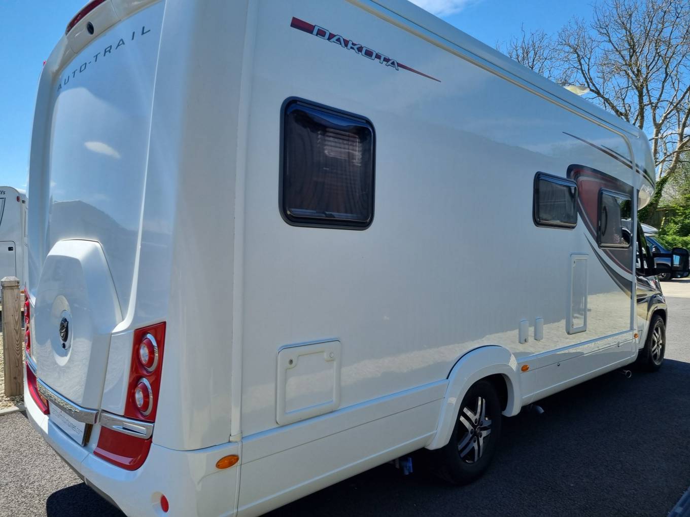 2018 Auto-Trail Dakota Frontier luxury motorhome for sale. This fixed bed layout offers great space and comfort with an amazing specification to match. A rear french bed sleeps 2 persons with the lounge conversion providing a further 2 sleeping places. The rear washroom is well equipped and includes a separate large shower cubicle. The mid ship kitchen is equally well equipped and includes a stacked fridge freezer combo. Other features include Fiat Ducato 4500kg chassis (C1 license req) with a 2300cc 150hp upgraded engine, colour coded cab, alloy wheels, awning, external gas point, electric step, reverse camera, TV, cab shades, cab air con, cruise control and much more. Sale will include full mechanical service, gas certification and 12 months warranty, Finance and part exchange welcome. Please call for further details.