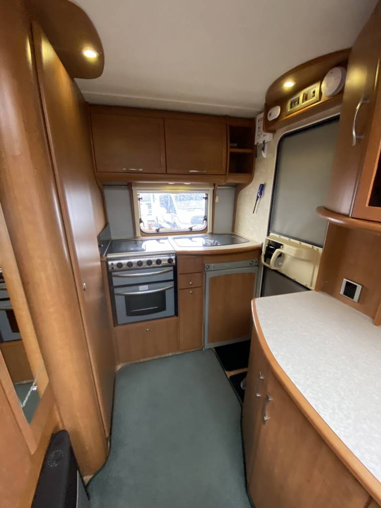 The layout is from the rear kitchen it has an oven, grill and gas hob with sink and drainer, to the side is a 3 way fridge freezer and there is ample storage above and below. The washroom is a fully equipped wet room which includes cassette toilet, sink and shower.