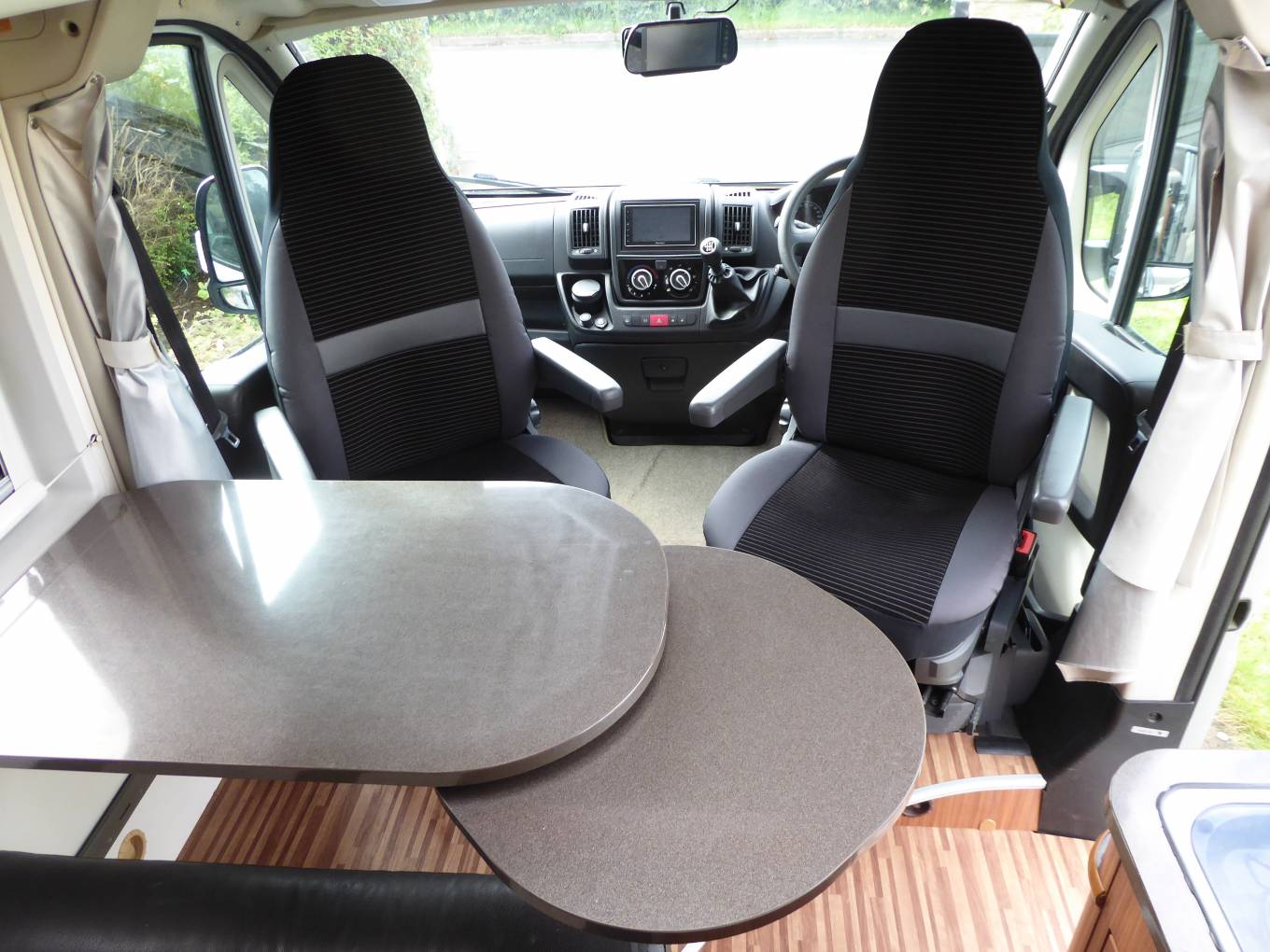 The half dinette has 2 travelling seats, with 2 seatbelts.