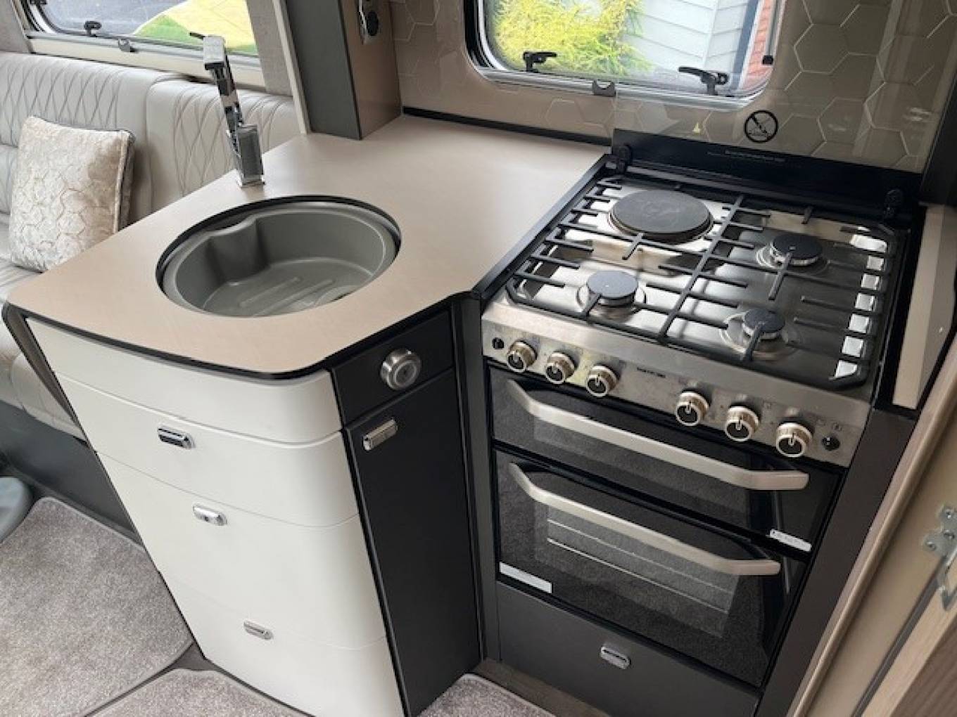 The Kitchen Area comes complete with Full Oven, Hob, Grill, 3 Way Fridge Freezer, Microwave, Sink plus Storage and Workspace