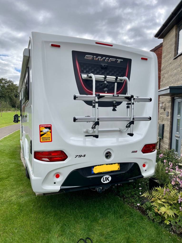 Superb Spec including; Gaslow System with 2 x Gas Bottles, Detachable Tow Bar, Solar Panel, Bike Rack, 4 x Travelling Seat Belts, Reversing Camera, Wind Out Awning, ALDE Heating and Hot Water System, Swift Command Tracker System, Cab Aircon, Electric Dinette Table, Entertainment System/Sat Nav, Avtex TV, Swivel Cab Seating, Cruise Control, Cobra Alarm, Blinds and Flyscreens Throughout including Cab Blinds, BBQ Point, Reversing Sensors, External 240v Point, Bluetooth, Electric Windows / Mirrors, Wing Mirror Protectors, Alloys, External Metal Lined Side Lockers, Wi-Fi System, More than Ample Storage Space Throughout.