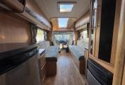 Features include Exterior gas BBQ point, 85w Solar panels, Tower, Access ladder to the roof, Recessed awning, Alloy wheels, 12v LED lighting, Truma Gas & Electric blown air heating, Full Size Spare wheel. Remis blinds to cab windows, Super Lo-Line model with sleek stylish roof line all incorporating a large panoramic sunroof and additional storage.