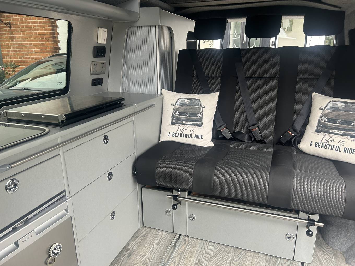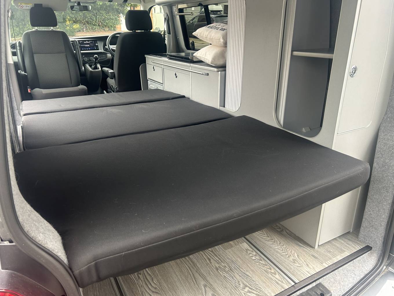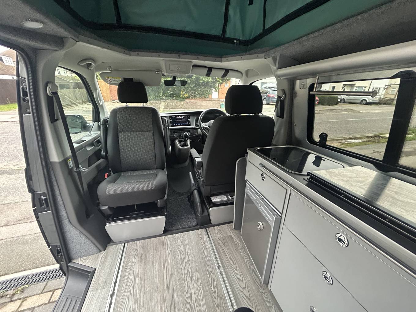 As mentioned the base VW T6.1 has everything you need to make the drive as comfortable as possible. It has a 2 litre engine with 5 speed manual gearbox and comes with cab air conditioning, adaptive cruise control, speed limiter, rear view camera, DAB radio - Navigation system 'Discover Media' including 'Streaming and Internet". Heated and power adjusted and folding wing mirrors, rear and front parking sensors - the list goes on and on...