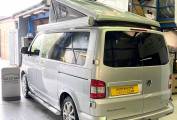 This VW comes with many extras including but not limited to, Easy to use Rock and Roll Bed, Easy access underbed Storage, Pop Top, Electric Windows. This Particular VW has a set of alloy wheels and side bars to match.