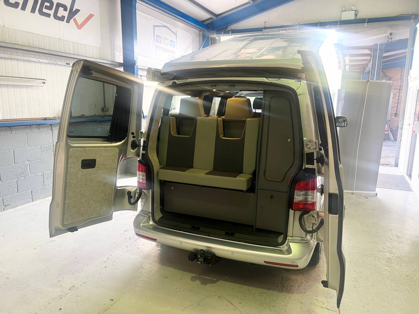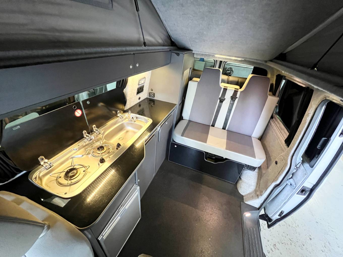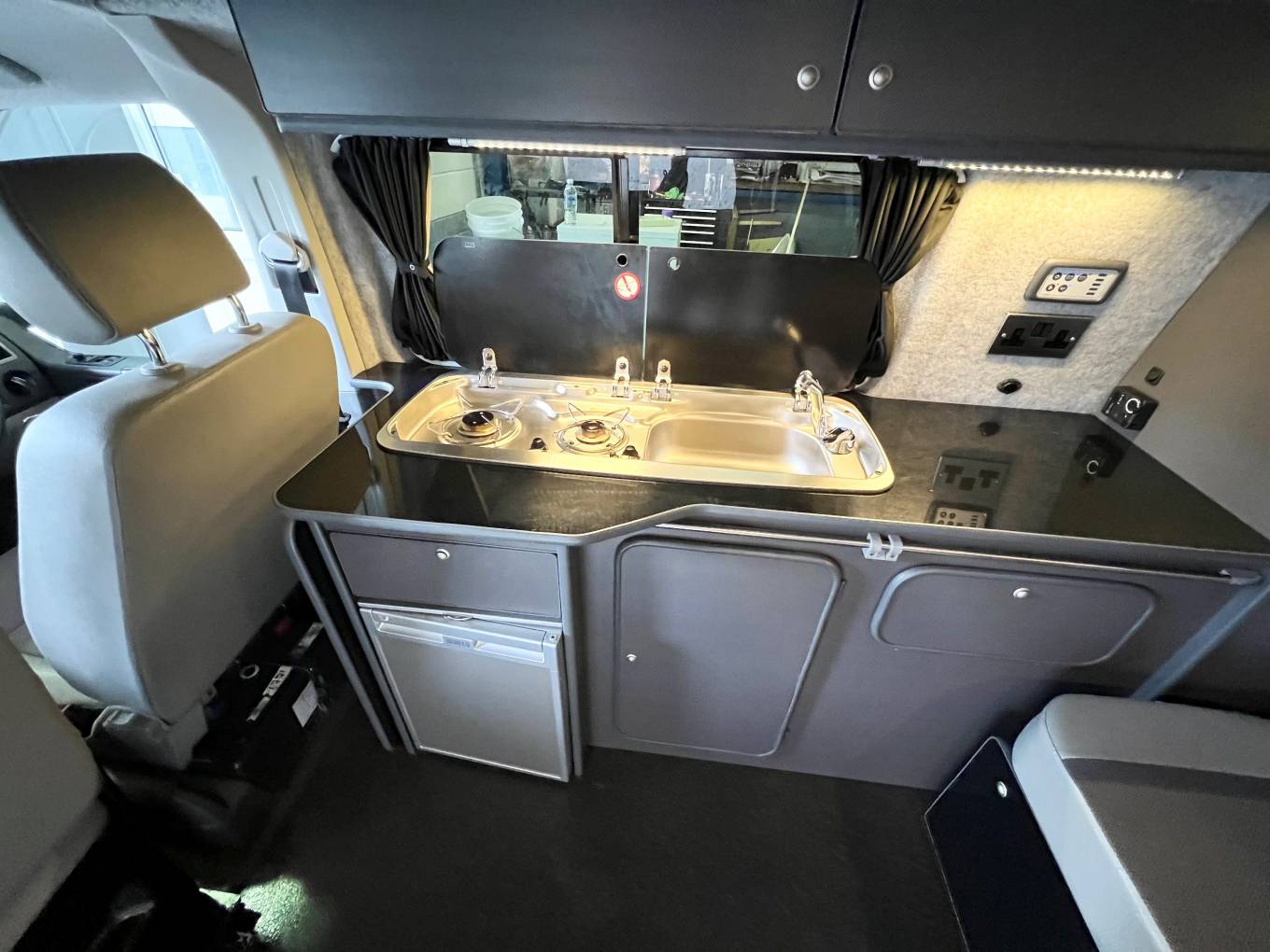 This VW is powered by a 2.0 Litre Diesel Engine with Manual Transmission. Stylish and sleek this conversion is one that will not limit you on where to go and what routes to take. A perfect choice if you are also looking for something that can be also used as a leisure vehicle, you can also sleep up to 4 people comfortably and travel up to 4 people at any one time. The Double bed in the van is one that is made with ease and offers great comfort! You also have 2 Gas Hobs, Cold running water and a Fridge.
