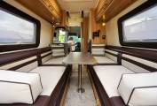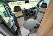 The cab is spacious and comfortable, spec includes Two Captain Chairs with adjustable arm rests, The captain chairs swivel with another small coffee table fitted behind the driver seat. There are Remis binds to the cab windows. Cruise Control, Electric Windows and Mirrors, Radio with Bluetooth Connectivity for Phone and Audio Streaming, Air Conditioning, Multifunctional Steering Wheel. Front & Rear Parking Sensors. Another thing to note is the space between seats is large to allow for very easy access into the habitation from the cab area