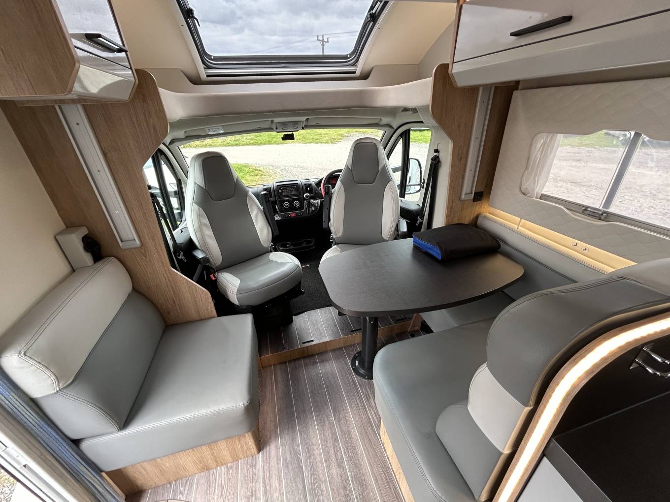 The T-740 is loaded with extras which include but not limited to, Cab Air Con, Large Wind Out Fiamma Canopy, TV and TV Aerial, Reversing Camera, Cruise Control, 200w Solar Panel, GasLOW System, Factory Fitted Cab and Habitation Blackout Blinds and Flyscreens for the Habitation Windows, 2 Sets of Keys, External Gas Point, Bike Rack for 4 Bikes, Alloys, Electric Windows and Mirrors, Media Centre with Phone Connect, Bluetooth, USB points in the front and rear, Dash Cam, Wifi (requires sim and subscription)