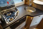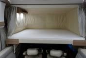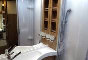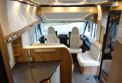 As you enter the MH into the central Dinette, there is ample seating for up to 6 people that includes an L shape seat on one side and a side bench seat on the other and with the front captain's seats that swivel it creates an excellent area to relax in. There is also a large pull down bed over the cab area.