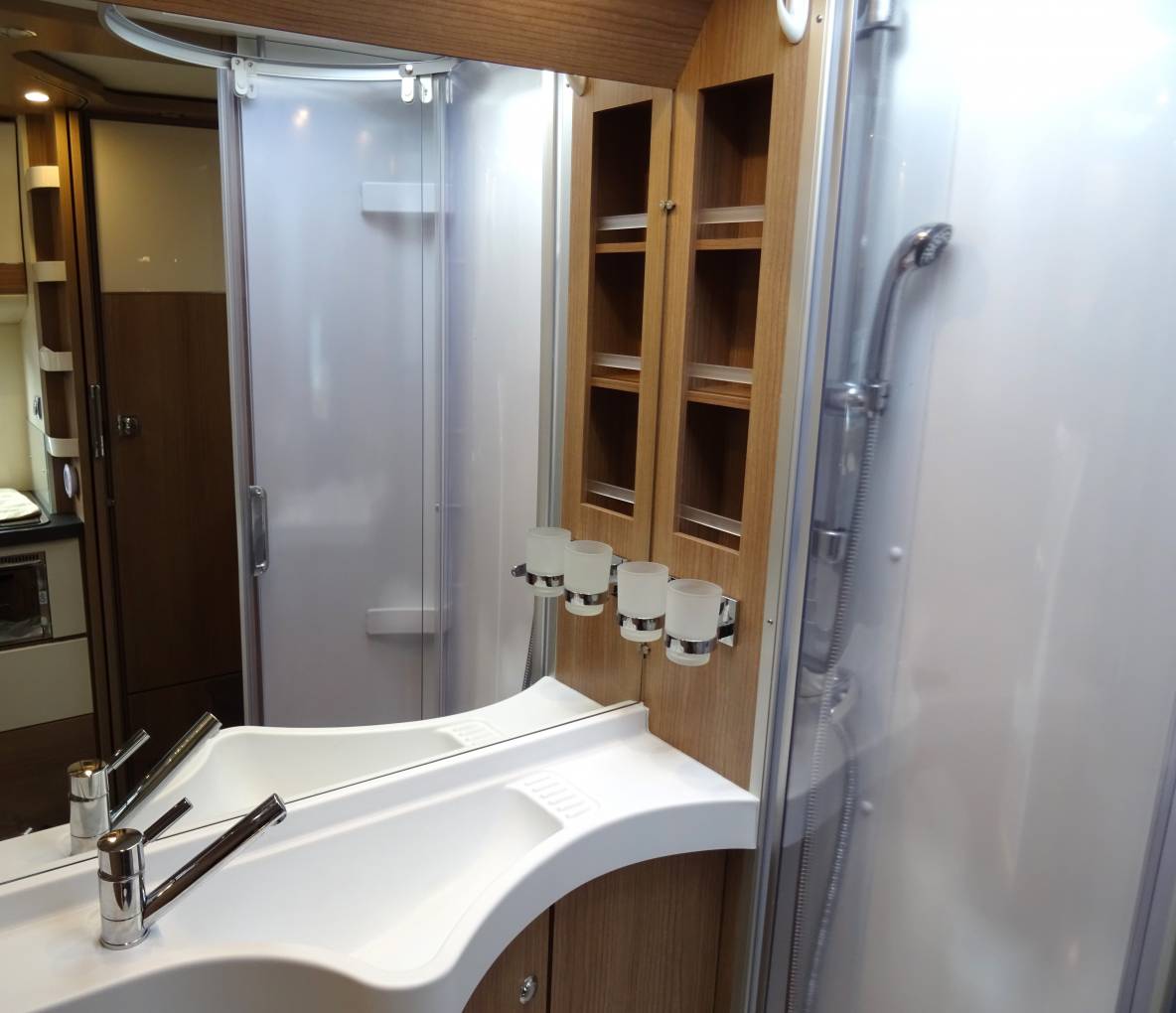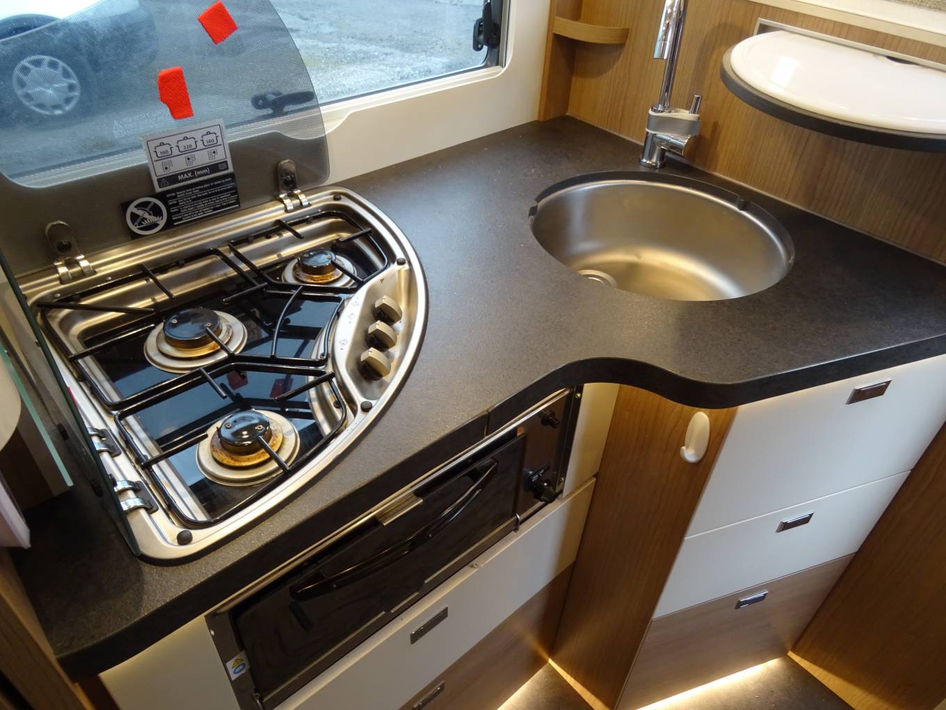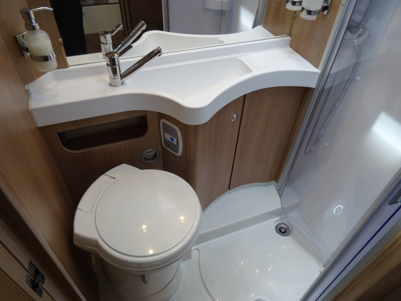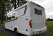 The kitchen features a hob with 3 ring gas burners, grill, and sink with a mixer tap, here is also a large fridge/freezer. The washroom has a sink with mixer tap, toilet and a shower cubical.. At the rear of the Motorhome is a transverse double bed that sits above a large sports garage. The garage has enough space for everything you will need to take for that relaxing trip away and has access from doors on both sides. The double layered floor allows for better insulation as well as additional storage compartments that can be accessed via internal hatches.