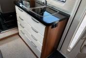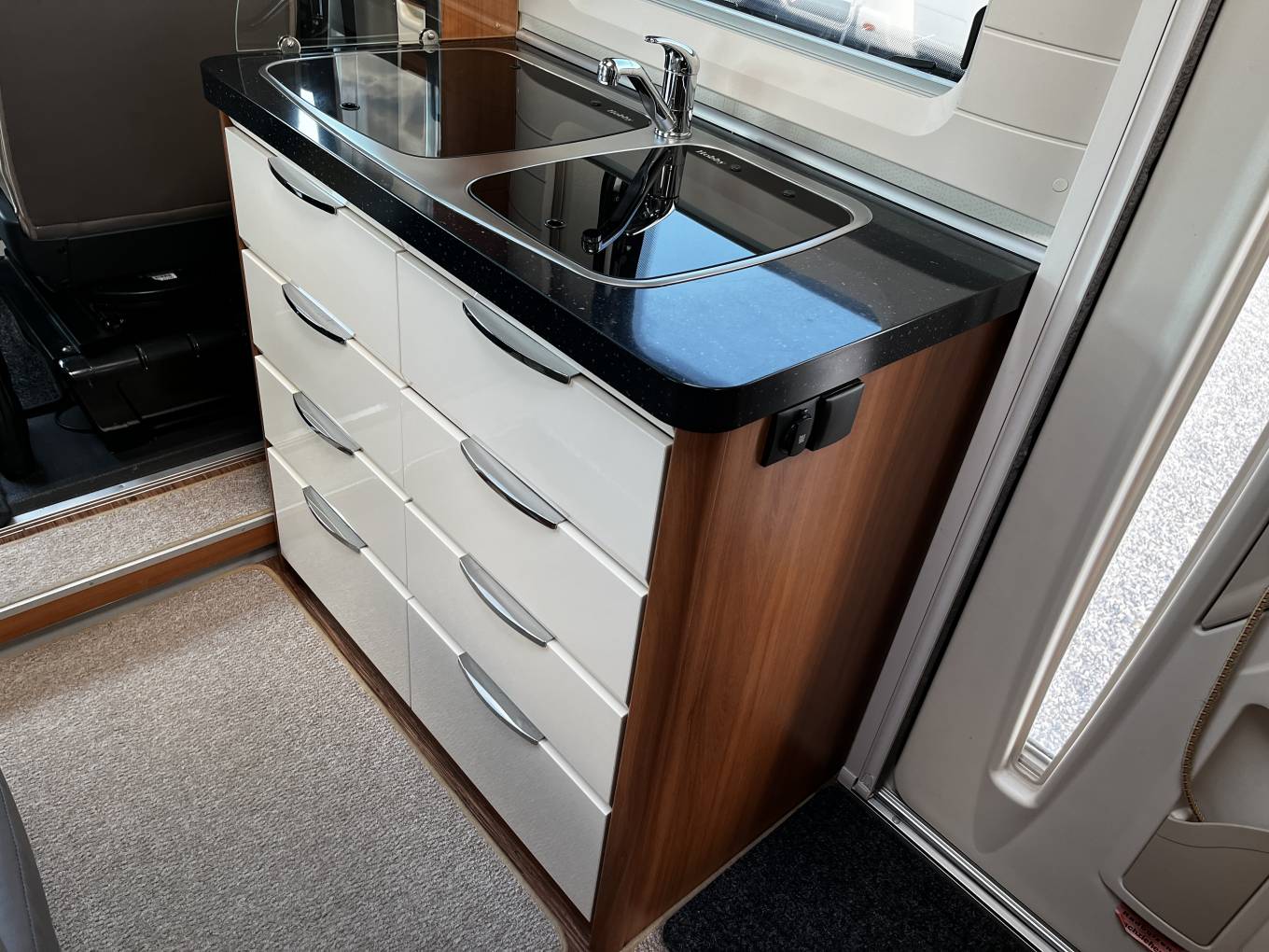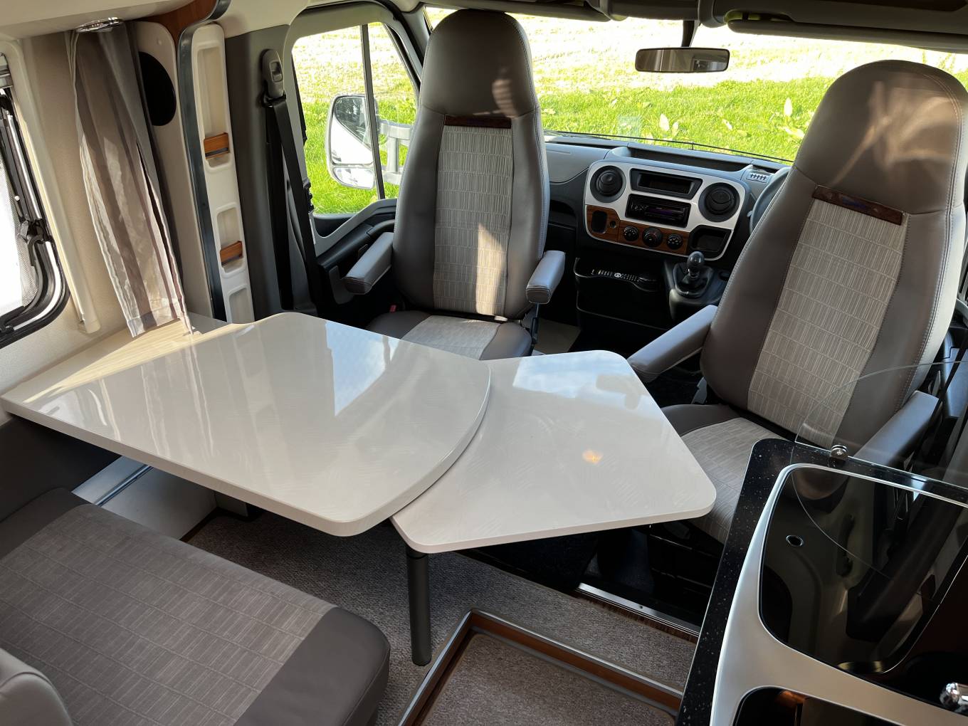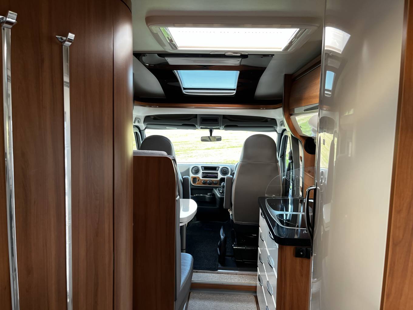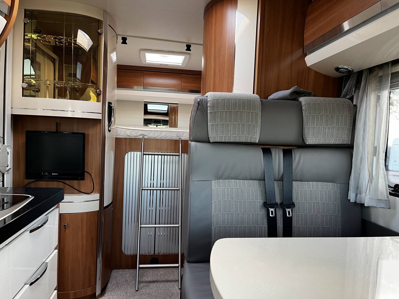 Living – 2 forward facing seats with seat belts and driver, passenger swivel seats create a spacious and comfortable living area with a light airy aspect.