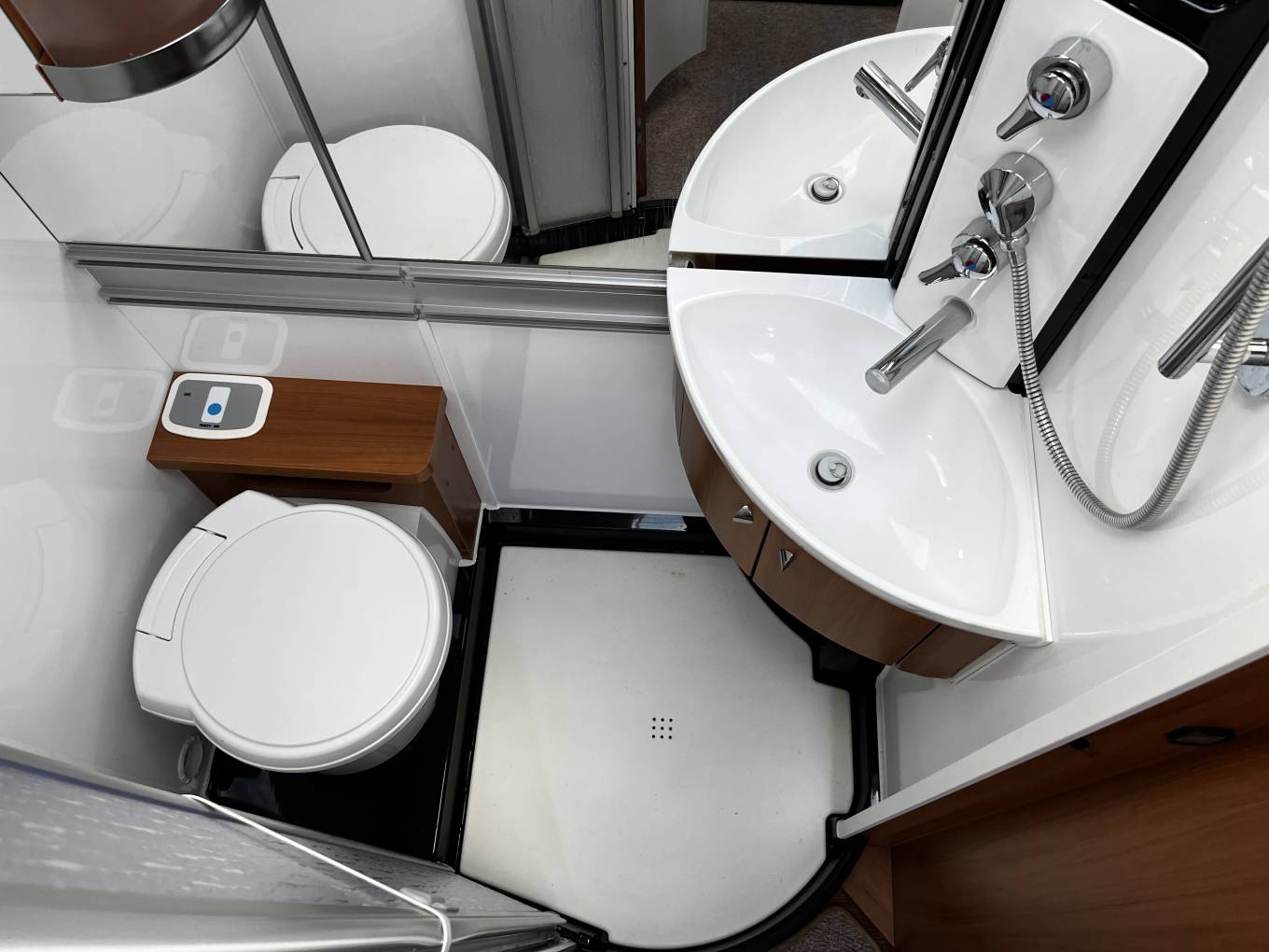 Washroom - Electric flush cassette toilet –Sink – Shower with folding Shower screen