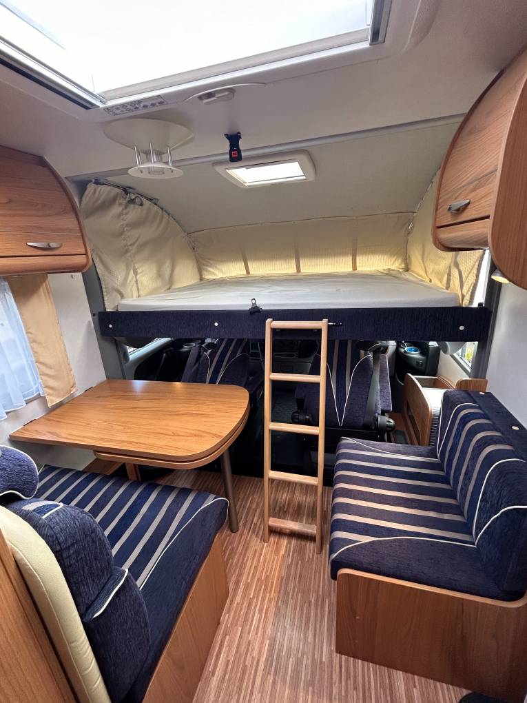 Step inside and immerse yourself in a world of comfort and convenience. The spacious cab comes fully equipped with cruise control, a reverse camera, electric windows and mirrors, and built-in blinds for privacy at any time. The two captain's seats rotate seamlessly to become part of the dining area, where an adjustable table offers the perfect space for meals or games and with two forward-facing seats featuring seat belts, the dining area easily transforms into a cosy bed, ideal for small children.