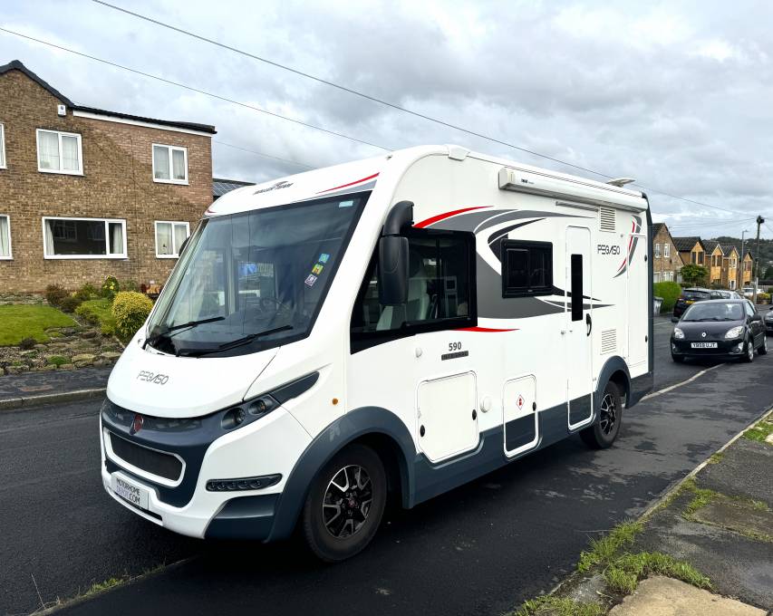 Motorhome Depot Macclesfield is thrilled to present this fabulous 2019 Roller-Team Pegaso Integral 590! Built on the ever-popular Fiat chassis and powered by a zippy 2.3L diesel engine, this delightful motorhome is perfect for families or friends looking to hit the road in style. With room for 4 to sleep and 4 travel seats, you’re all set for your next adventure! and at 3500kg, it can be driven on a standard licence.