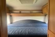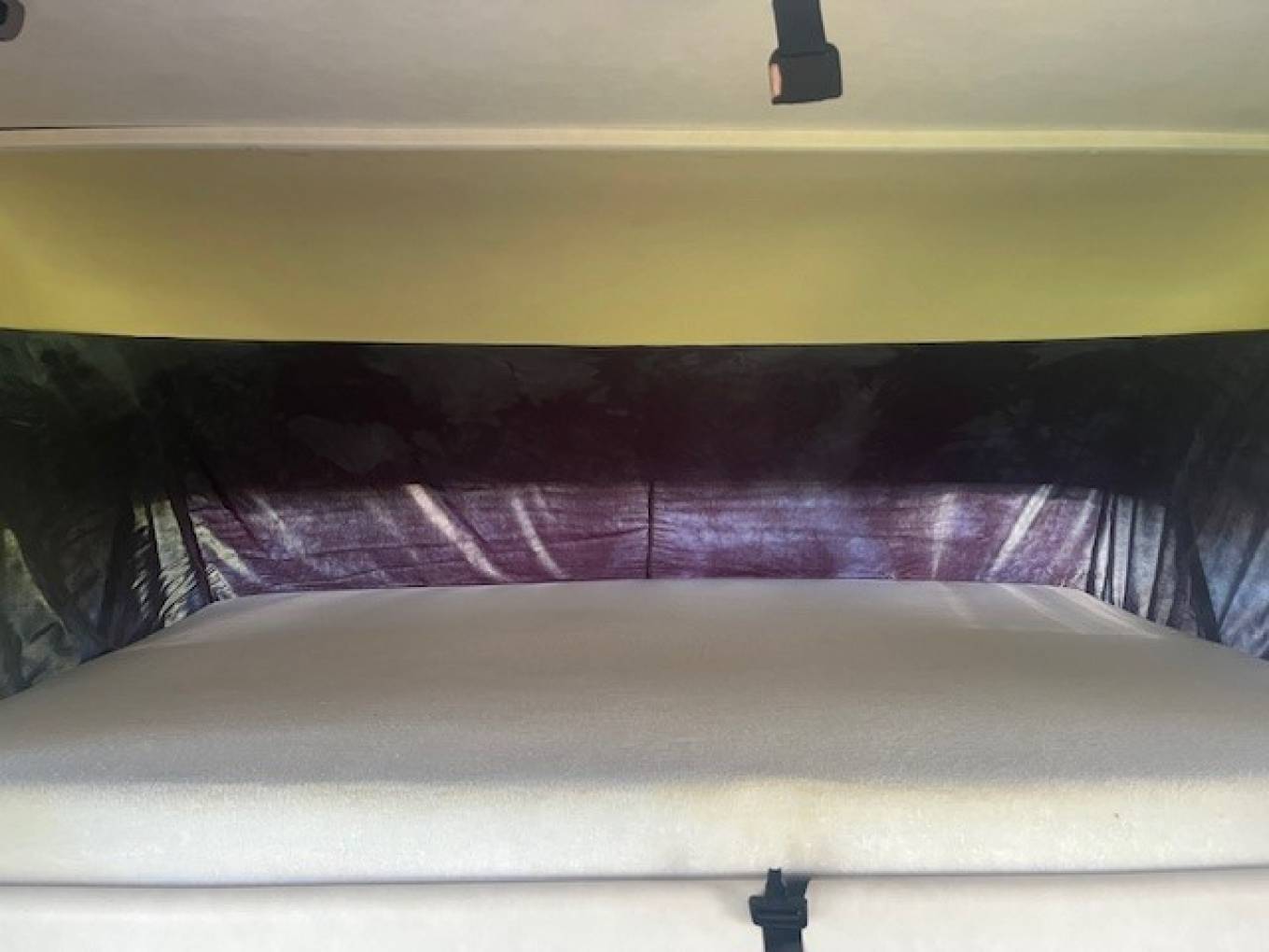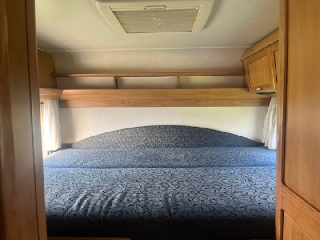 Sleeping is via the Fixed Double Bed located in the Rear of the vehicle with Privacy Screen. The Dropdown Bed over the Cab provides a further Large Comfortable Double. It is also possible for an additional Child Single from the Dinette Bench Seating
