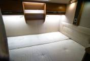bedroom with sought after fixed double bed, upper aircraft style lockers.