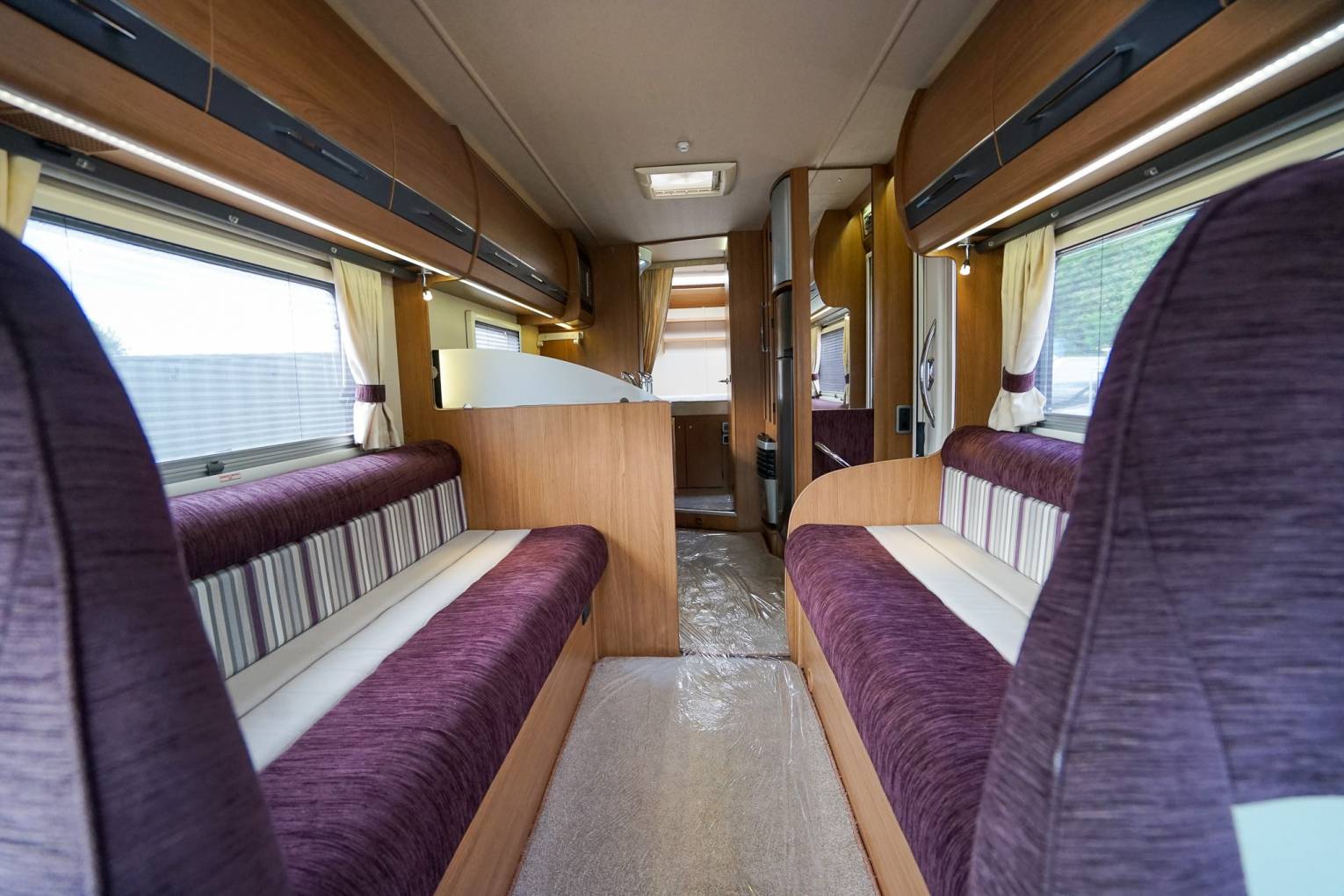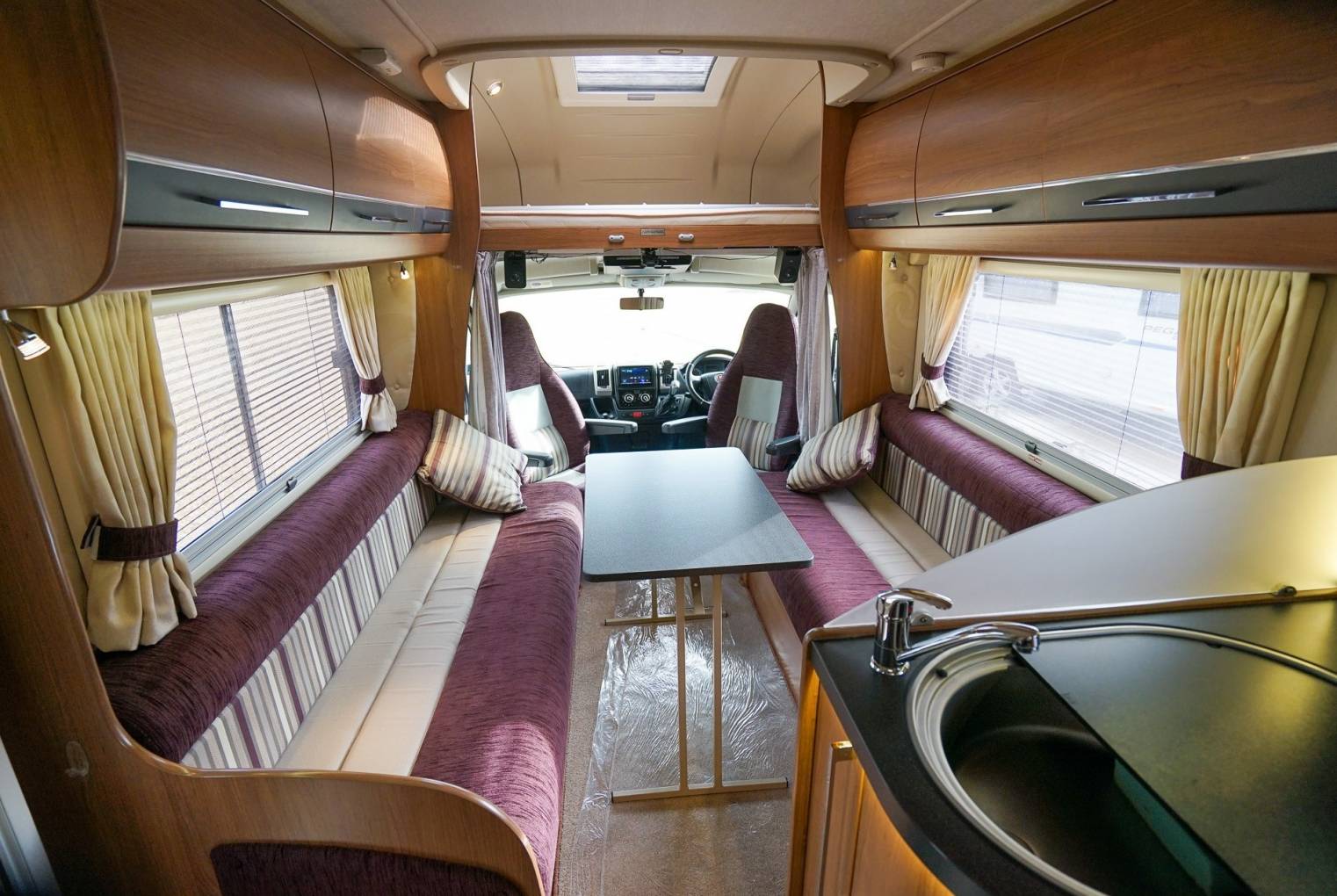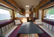 Using the electric step, enter the motorhome and the lounge is to your left, with two parallel