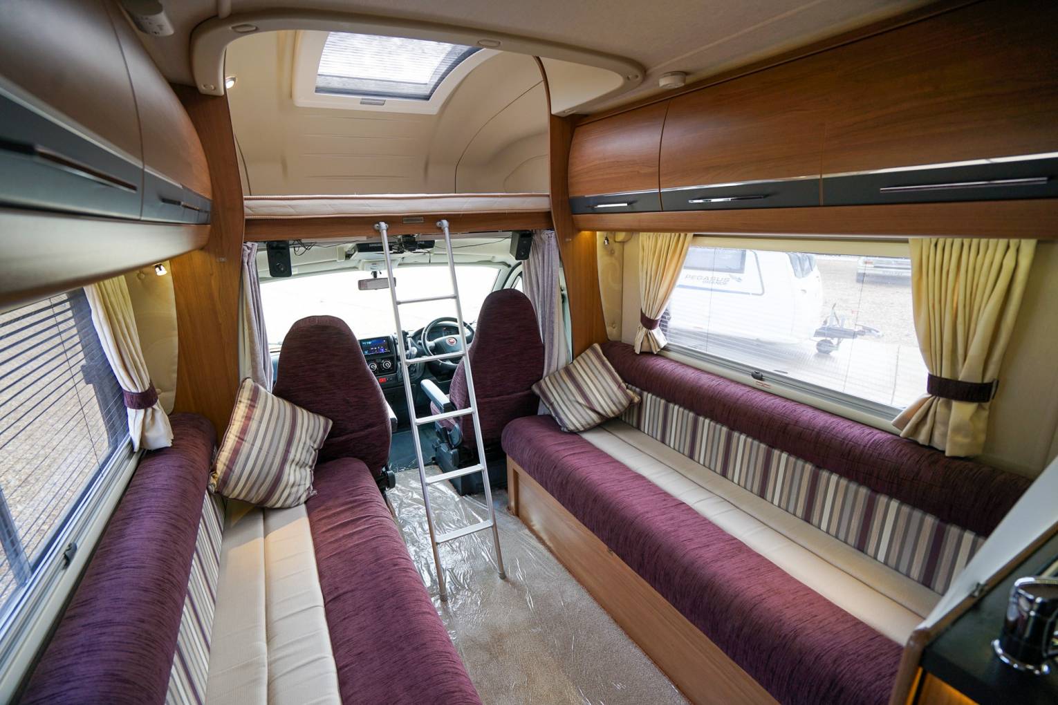 Spacious Front Lounge with two long sofa’s, Awning, Alloy Wheels, Bike Rack, External