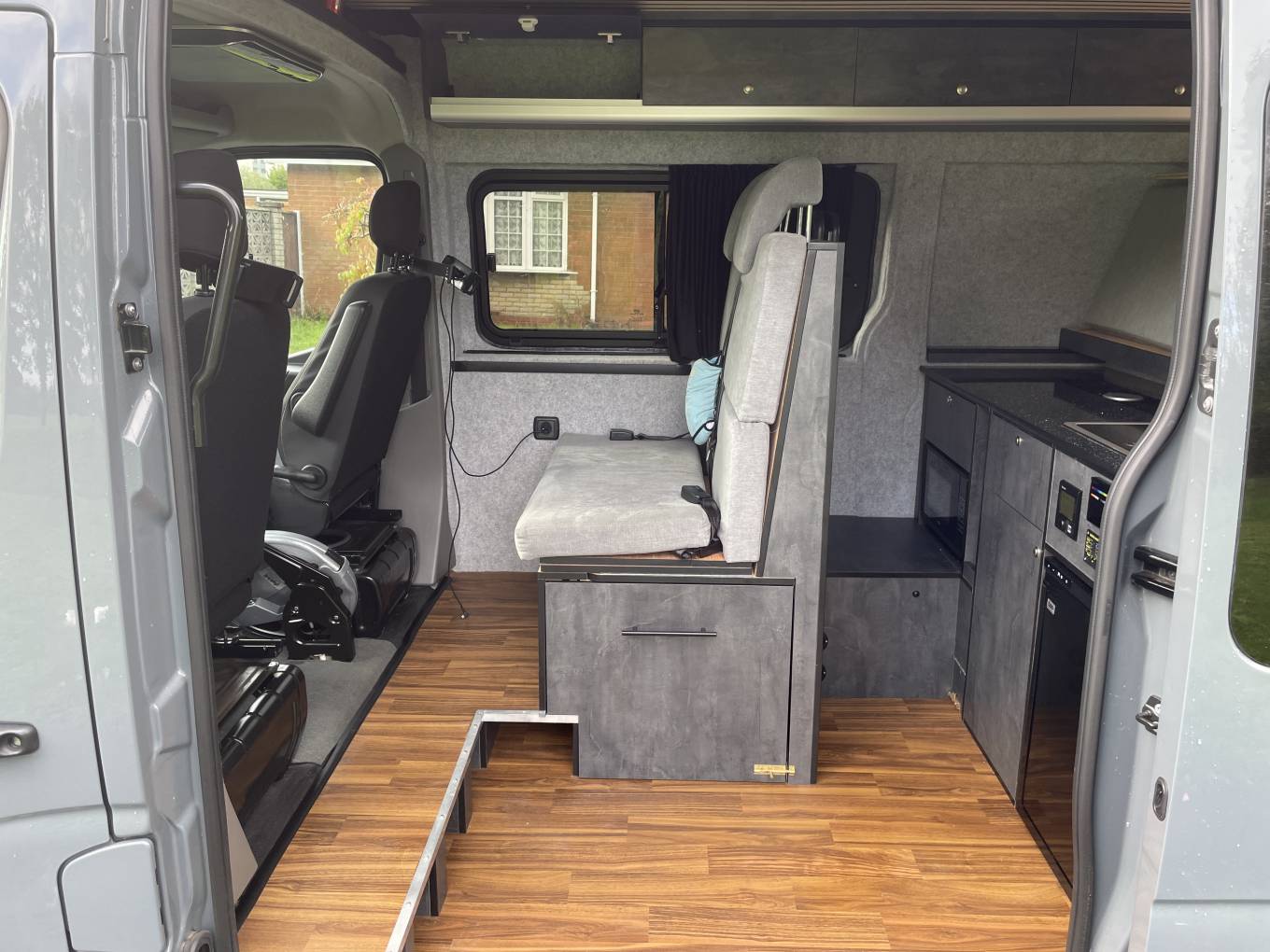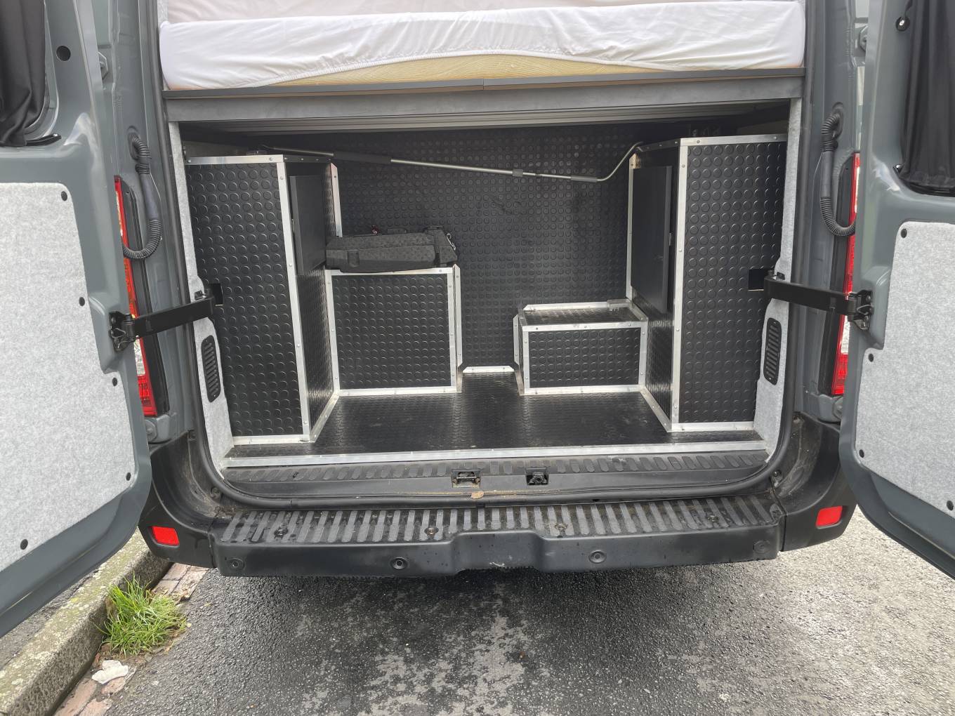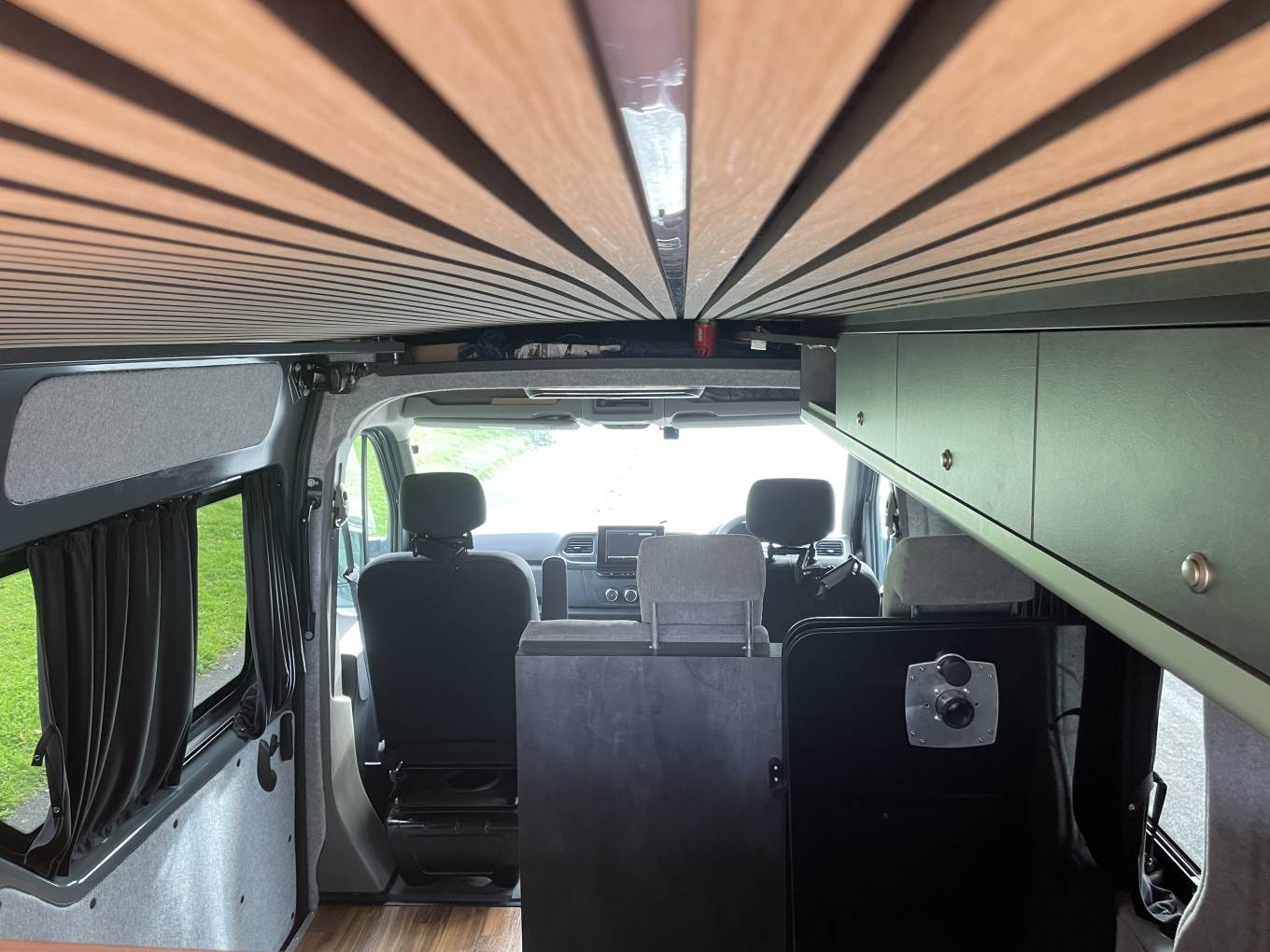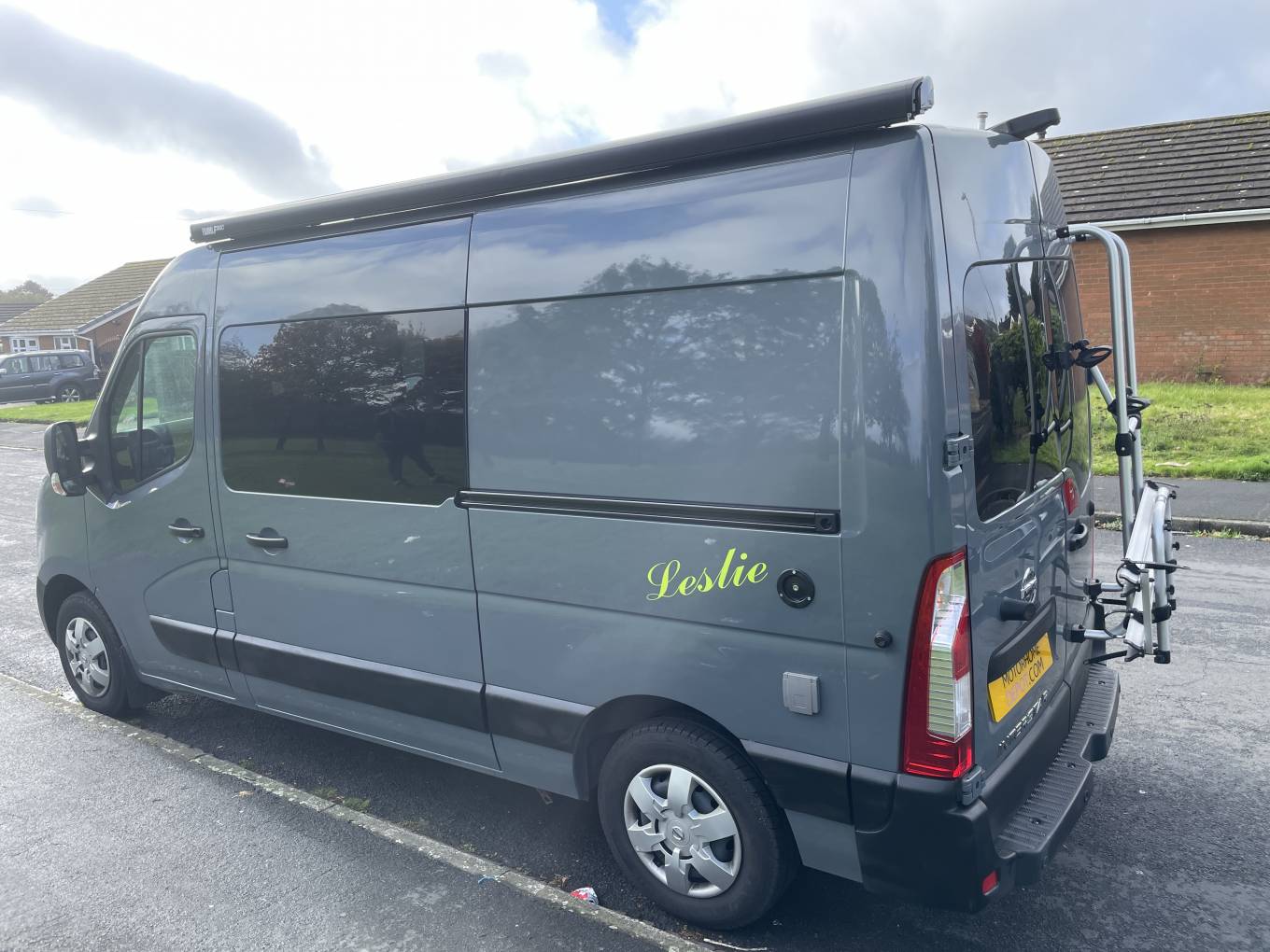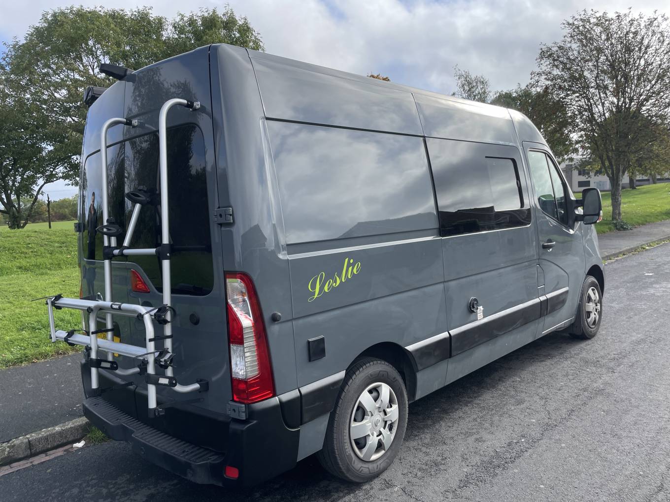 Here we have Leslie, a 4 berth, 4 seat belt proffesionaly converted campervan done by CXR Conversions in 2023. Based on the Nissan Interstar this is a very spacious, well equipped Campervan that is designed for off grid breaks, adventures and trips away, with plenty of room for comfortable journeys,whether as a single traveler or as a family group. It has been designed with ease of access considered which not only gives plenty of room inside the van but has a large and spacious garage that could be used for bicycles or a wheelchair to be stored in there if wanted.
