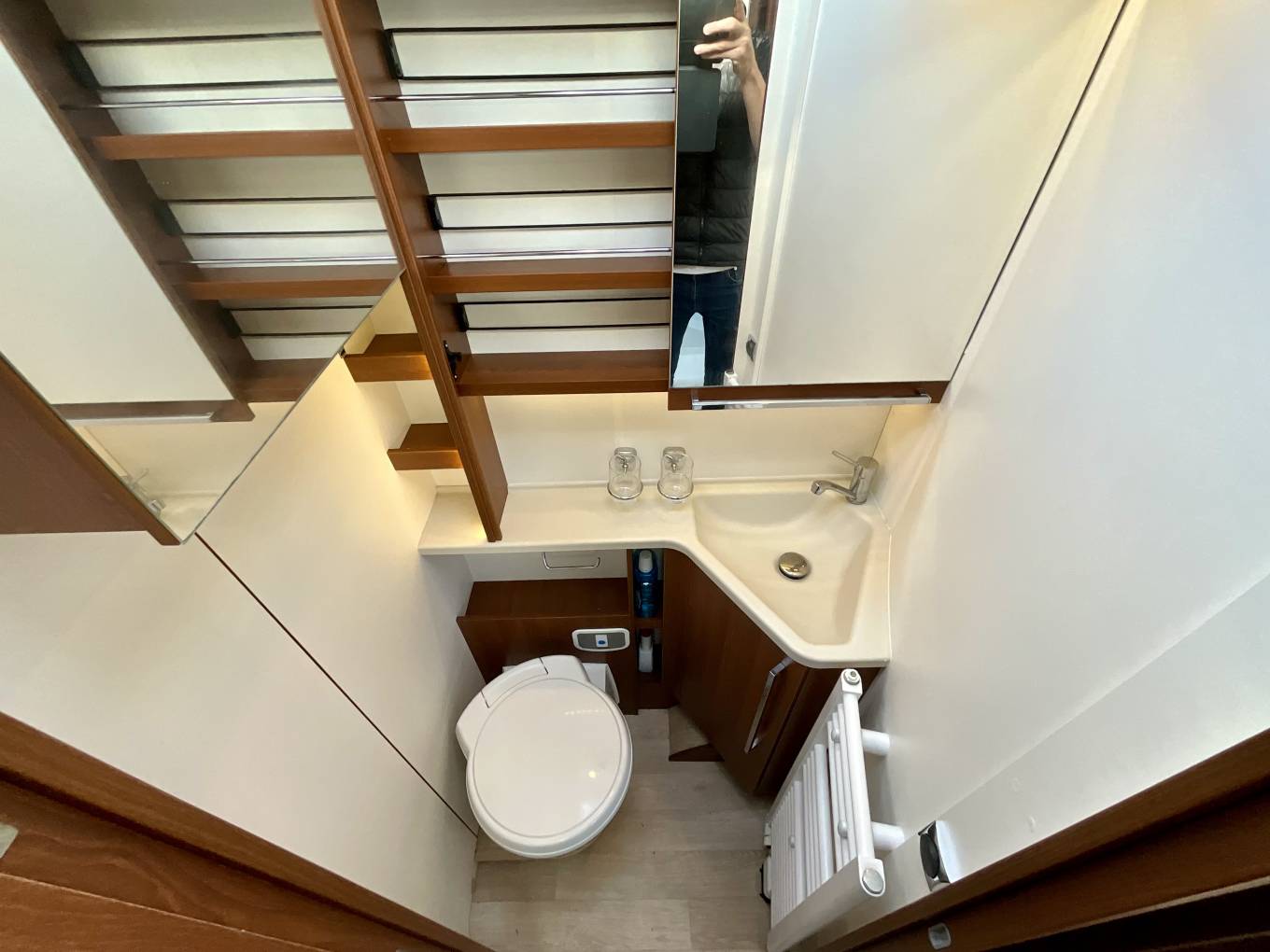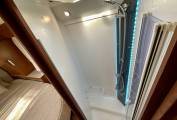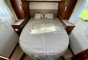 Alde underfloor heating features throughout the motorhome, with a separate thermostat for the bedroom to control the temperature without leaving the comfort of the extendable island bed. Storage is prevalent in the large wardrobes either side of the bed, and features a partition to separate the bedroom from the lounge.