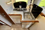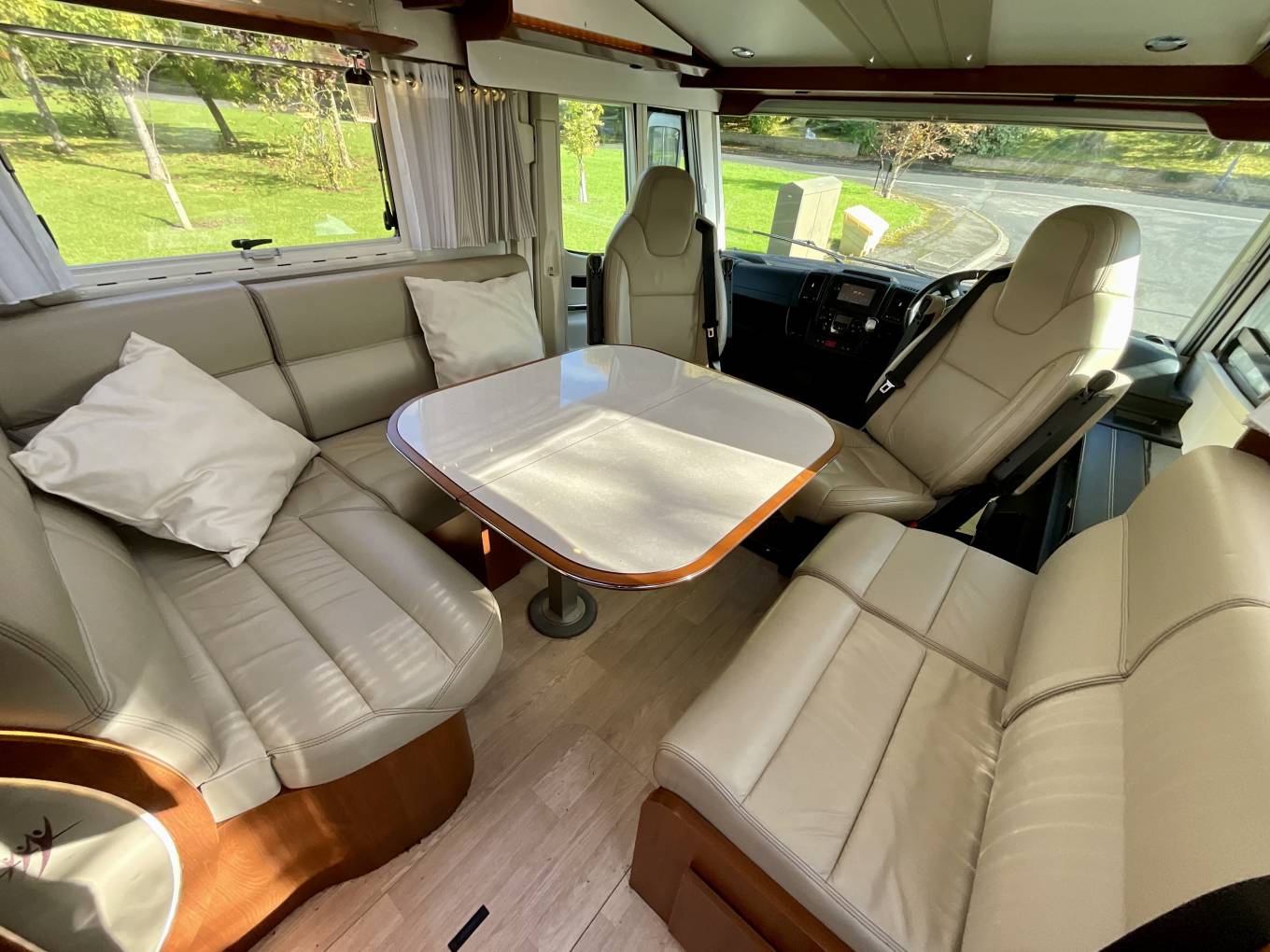 The spacious lounge can comfortably sit seven once the driver and passenger seats are swivelled round. The large fold-out table can be adjusted and moved easily, and is perfect for socialising or meal times.