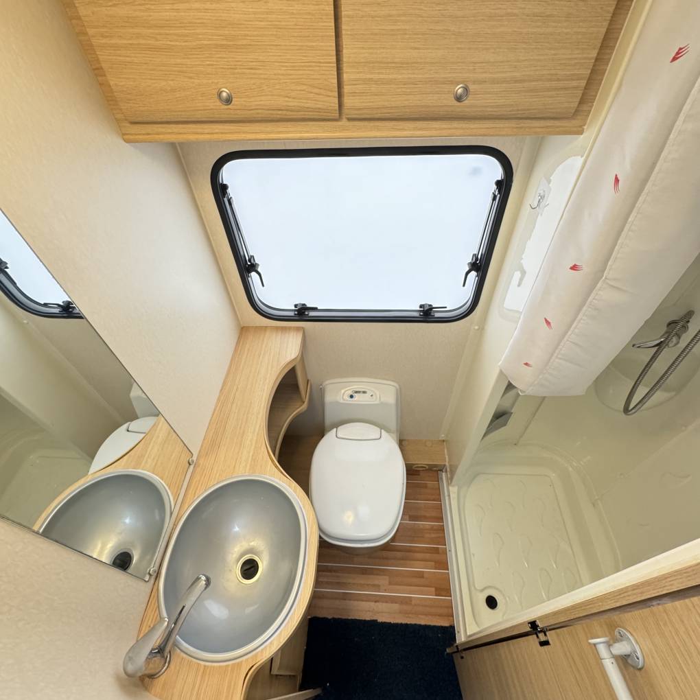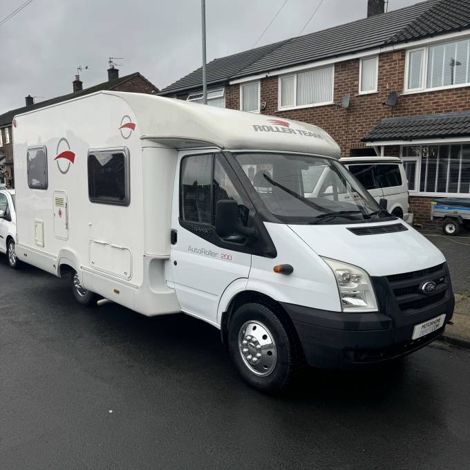 Welcome to the sale of this 2008 Auto Roller Rollerteam 200 based on a 2.2 Ford diesel with a 5 speed manual gearbox. This compact and comfortable 2 berth motorhome has a spacious layout providing 2 berth accommodation in the form of two single beds or a good sized double, swiftly converted from the long side sofas that make up the lounge. A drop-in table provides a great place to dine and entertain. Plenty of storage in the overhead lockers, built in over cab cupboards and there is a good sized hanging wardrobe. The kitchen at the rear has a three burner gas hob and grill, sink with drainer and mixer tap, microwave and 3-way fridge with freezer box. To the side is a private washroom with flushing cassette toilet, sink with vanity mirror and separate shower.