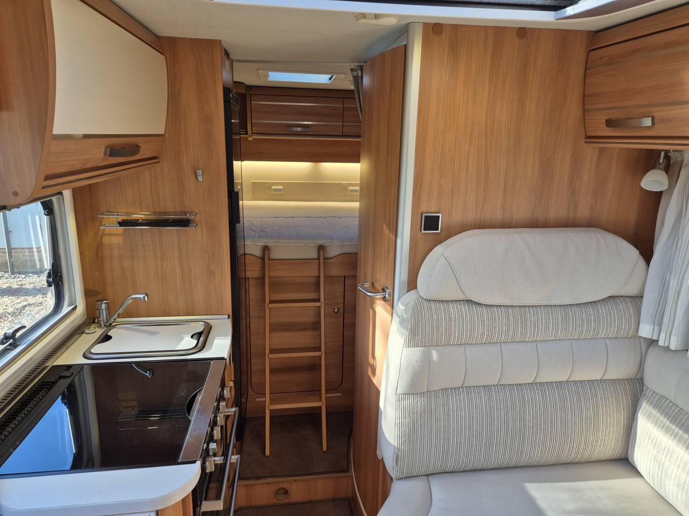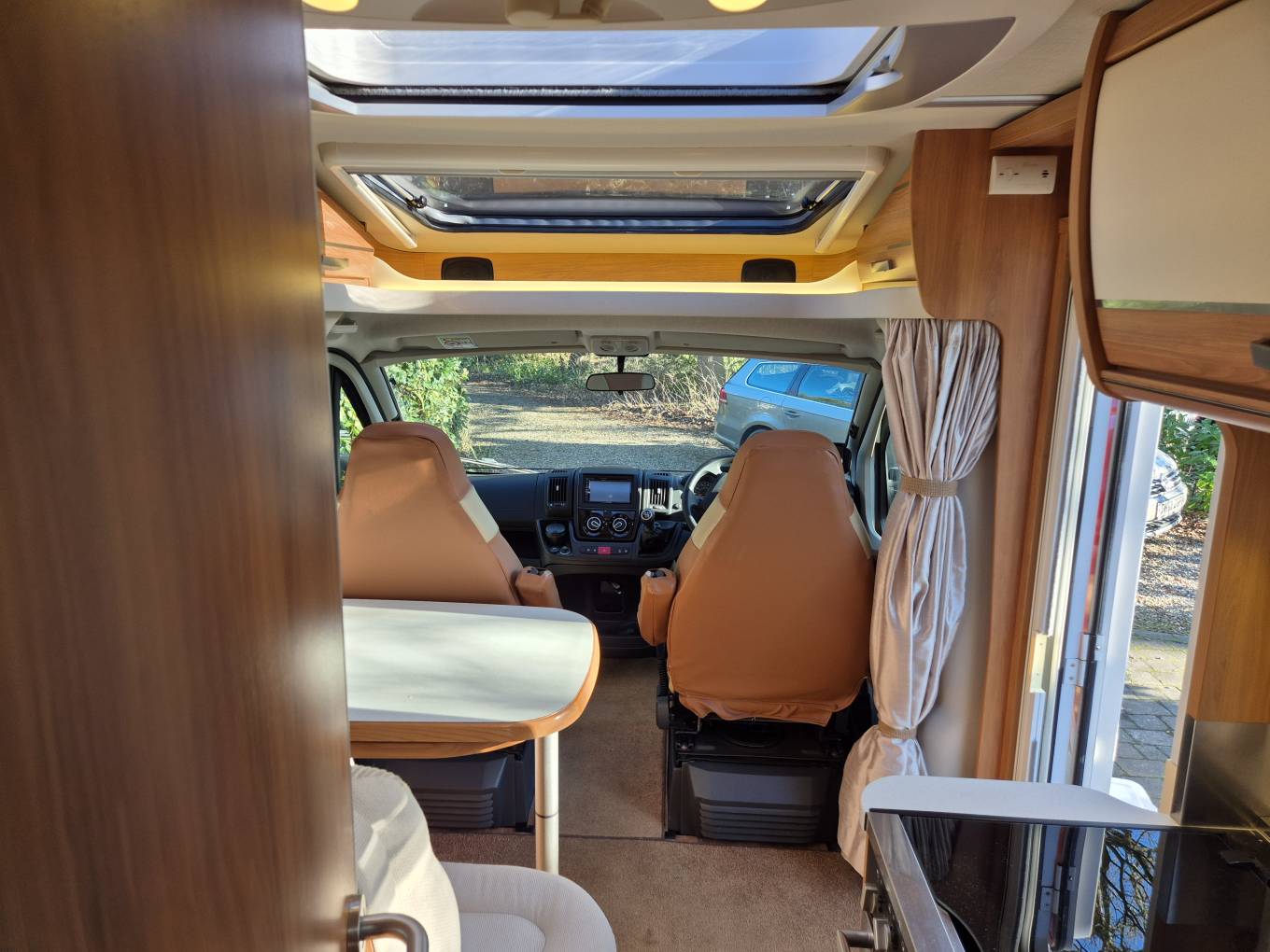 Externally it is fully insulated so ideal for cold weather travel and there is also a solar panel, awning, gas lo system, outdoor BBQ point and a dual motorbike rack and a detachable bike rack and full size spare wheel. All Exsis-t models have narrow bodies of just 2.22 metres wide, but the newest addition to the line-up, the Exsis-t 414, also comes in at under six metres long. Based on the 3,500kg Fiat Ducato with rear chassis by Al-Ko, it has a mass in running order of just 2,660kg. So there’s a massive 840kg payload to play with – and the large rear garage has a 250kg allowance (many rivals are limited to just 150kg), giving scope for you to carry a motorcycle as well as both French & German Crit Air certificates. The Cambelt was replaced 7/11/22 at 8771 miles and it also has a current valid habitation report.