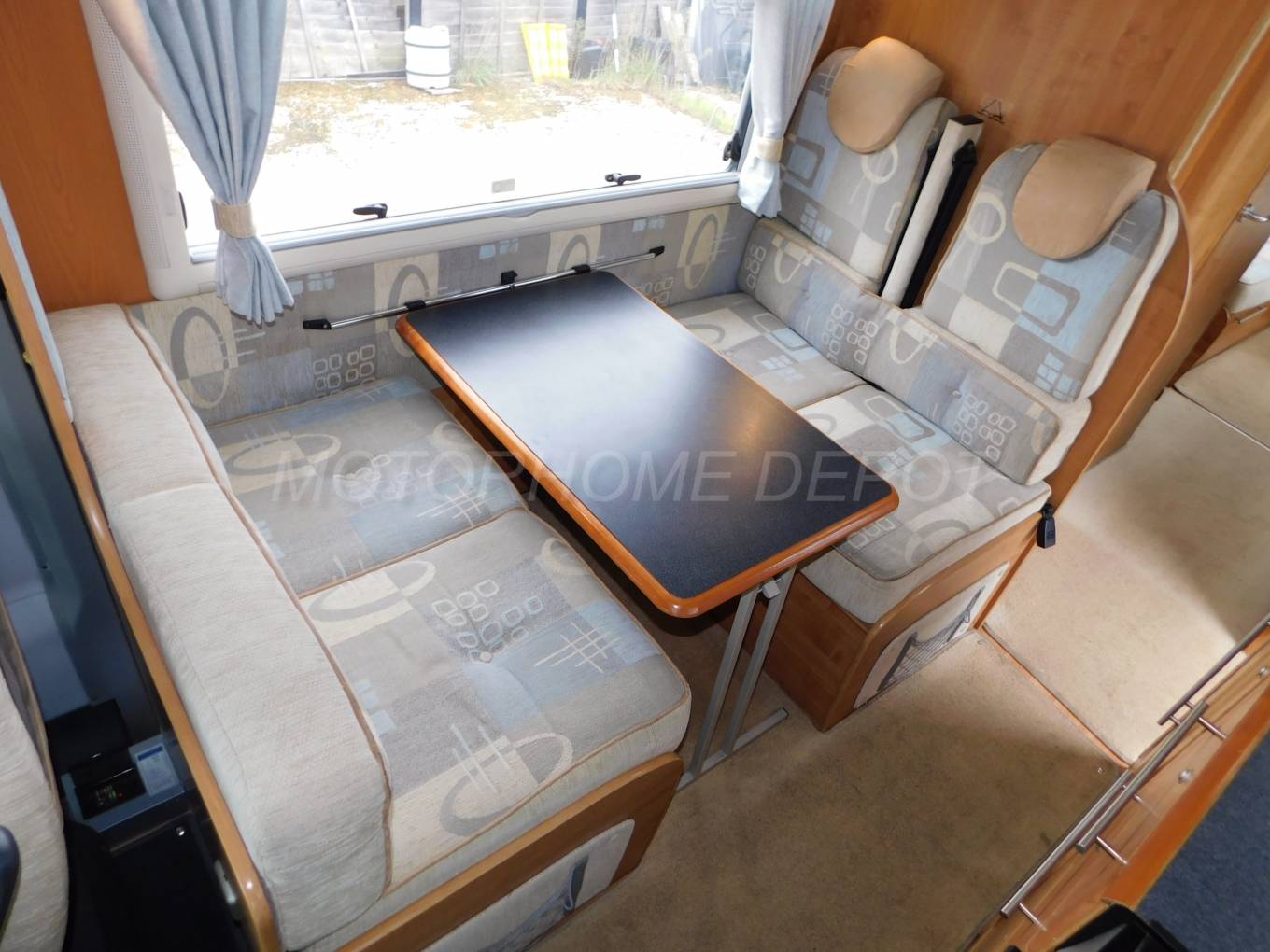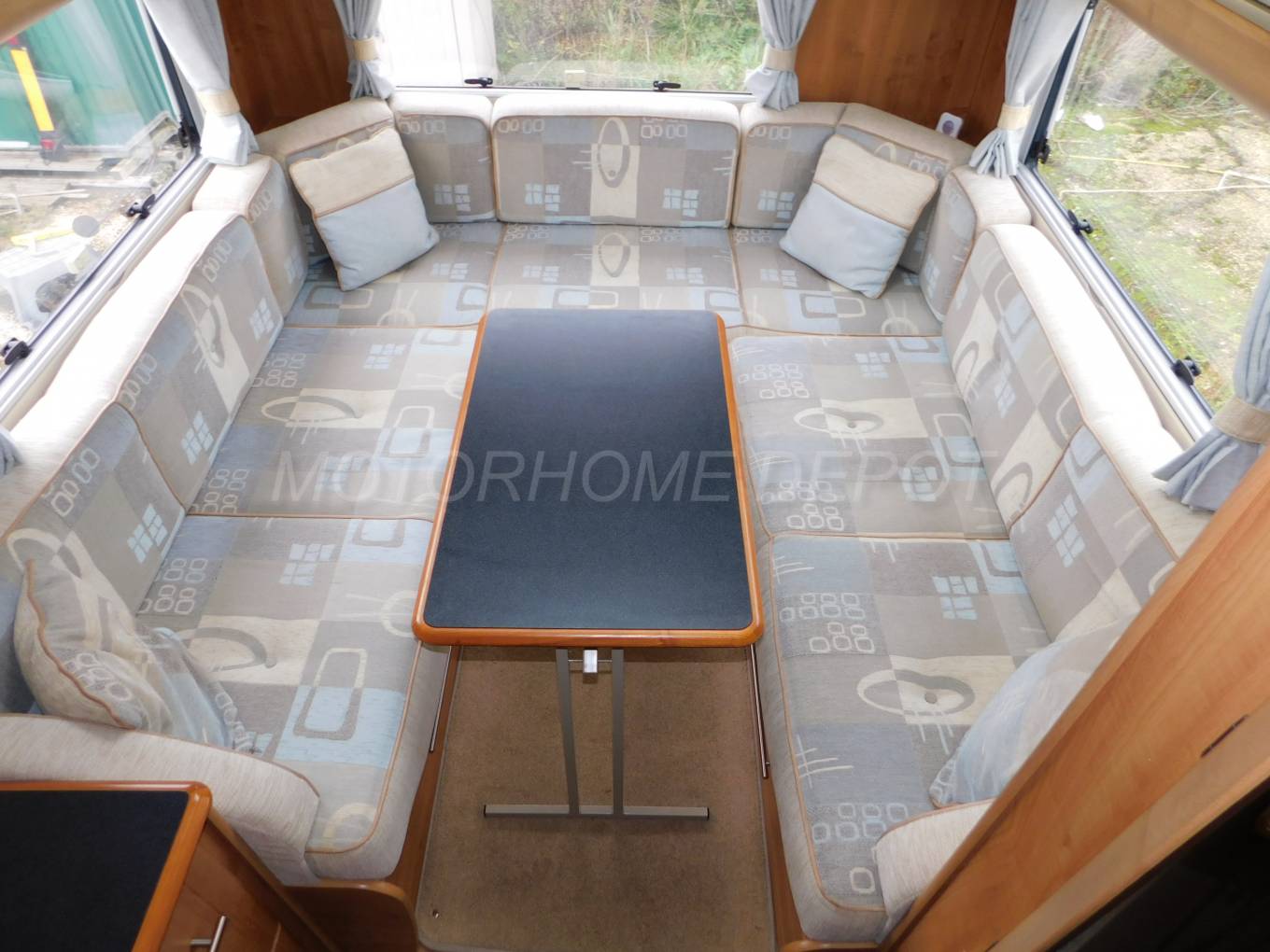 u-shaped rear lounge, 3 large windows & opening sunroof make it light &