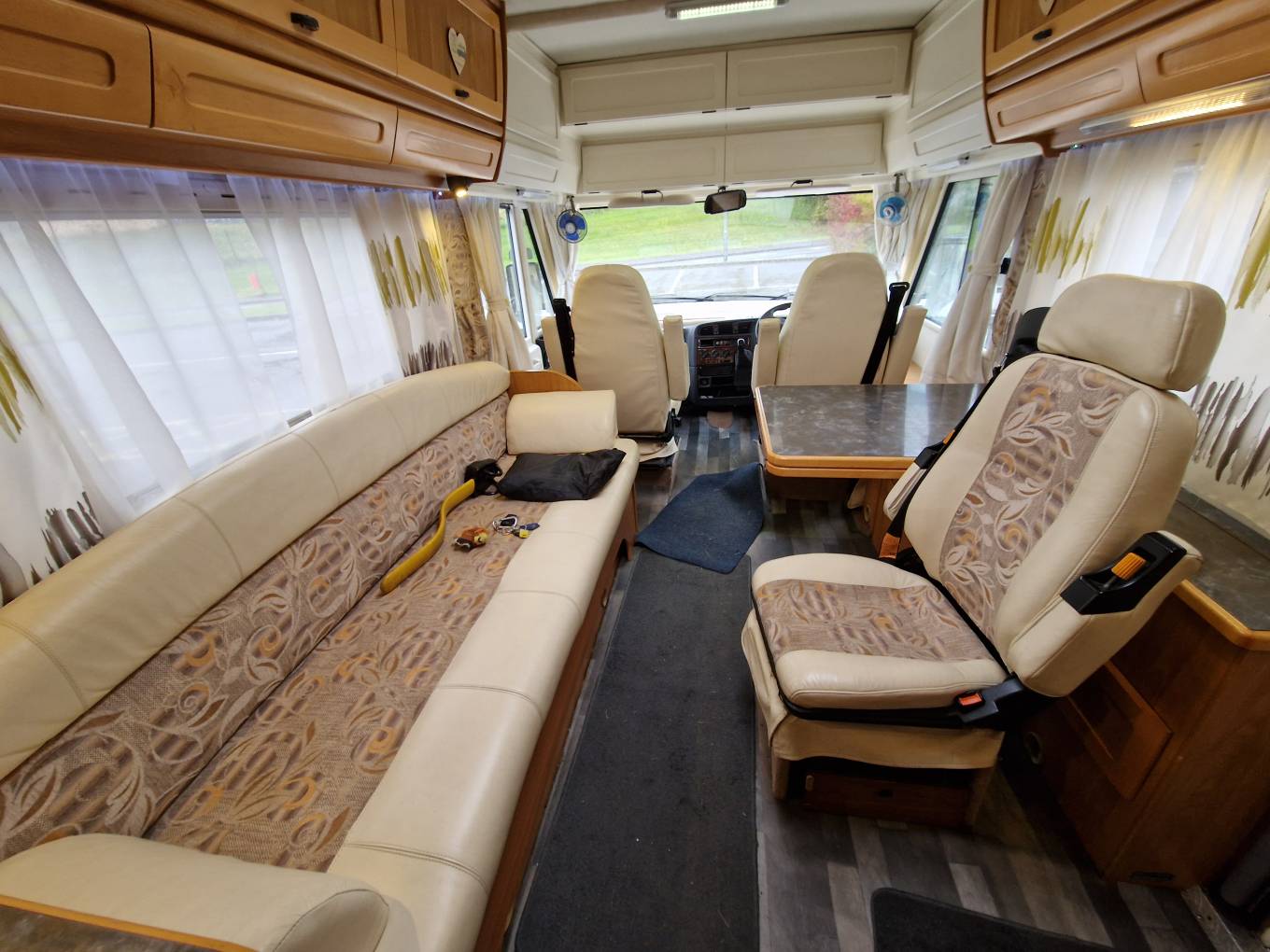 Motorhome Depot are pleased to present this excellent 1996 Hymer E690 3-berth,3-belt A-Class motorhome. Based on the Fiat Ducato, it is powered by the reliable Fiat 2.5 Turbo Diesel engine and 5-speed gearbox. Having done 160000 miles, it comes with service history including a cambelt change at 150k and an MOT until January 2025. It also has a Longlife full stainless steel exhaust system.It has a GVW of 4500kg with a payload of 980kg so will need a C1 licence to drive and is 7.5m long.The current owner has spent a lot of time and money maintaining and upgrading this A-Class and is in great condition for its age.