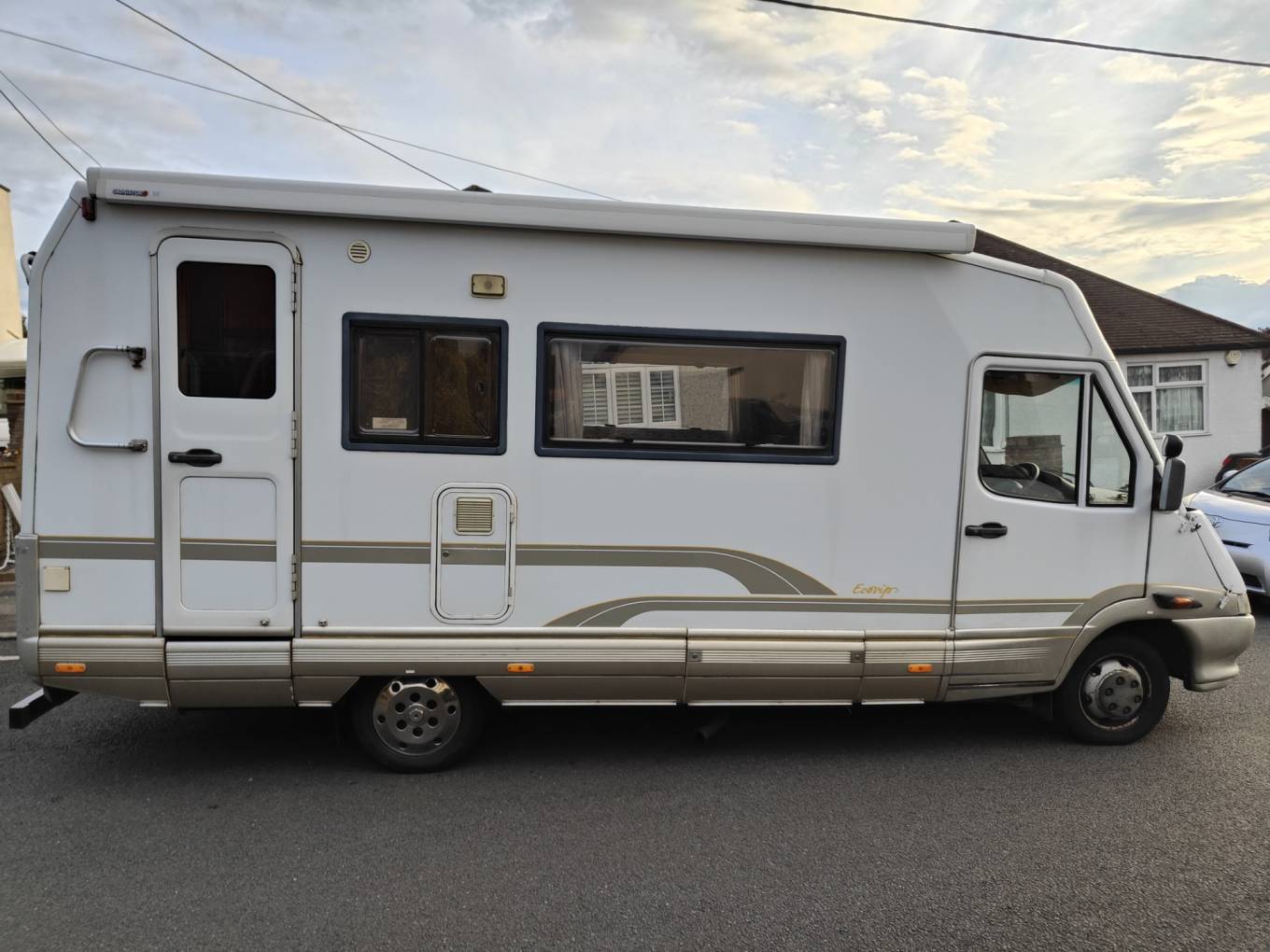This is a lovely example of the Laika Ecovip 400i. This A class motorhome is based on the heavy duty Iveco 2.8 turbodiesel with a 6 speed manual gearbox. With the large drop down double bed and a further double and single, this 5 berth, 5 seatbelt model has 2 dinette areas centrally with a great kitchen and large bathroom to the rear. Due to the quality build of this Laika, you will need a C1 licence. 44k miles from new with an mot until july 2025. One family owned from new. Based in Kent and more pictures available.