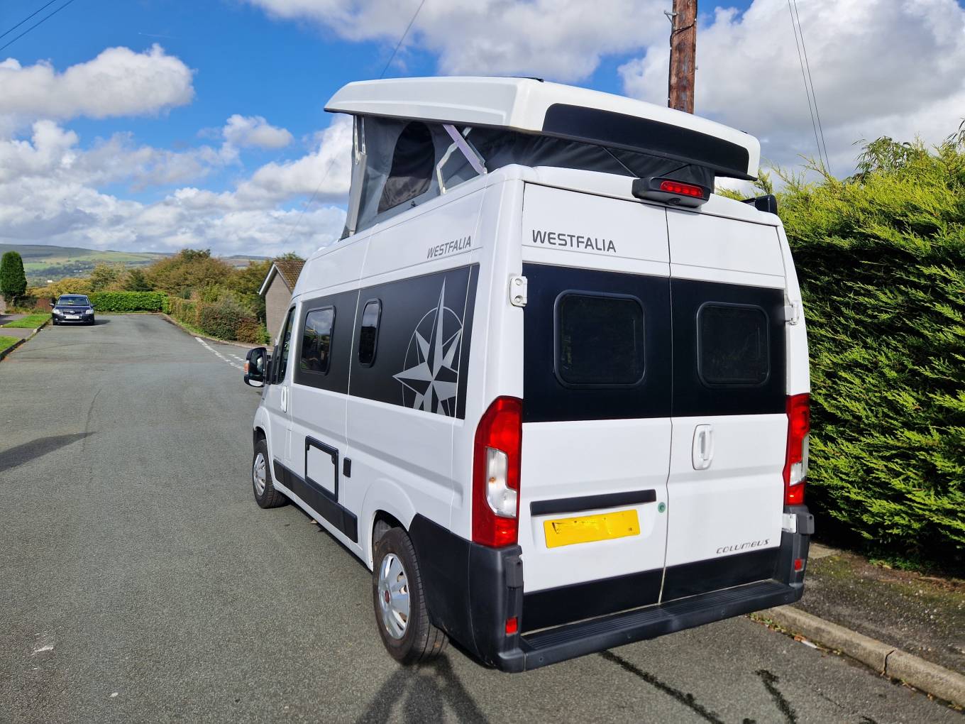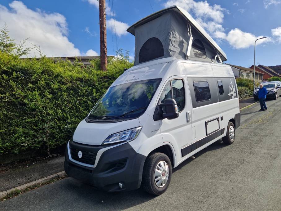 Motorhome Depot are pleased to present this superb 2022 Westfalia Columbus 540D Poptop 4-berth,4-belt Panelvan Motorhome. Based on the Fiat Ducato, it is powered by the reliable 2.3 Fiat Diesel engine and 6-speed gearbox. Having only done 10000 miles, it has had its first service in March 2024 and will come with a fresh habcheck so the next owner can have complete peace of mind. It has a GVW of 3500kg with a payload of around 500kg so can be driven on a standard UK licence.Westfalia have a great name throughout the industry for producing high quality campers such as this one.One of the great things about this camper is that it’s only 5.4m in length, making it a perfect car replacement, while still offering all the features of a full size motorhome, with the rare optional extra being the large electrically-operated pop top roof, this can comfortably sleep and travel 4 people.
