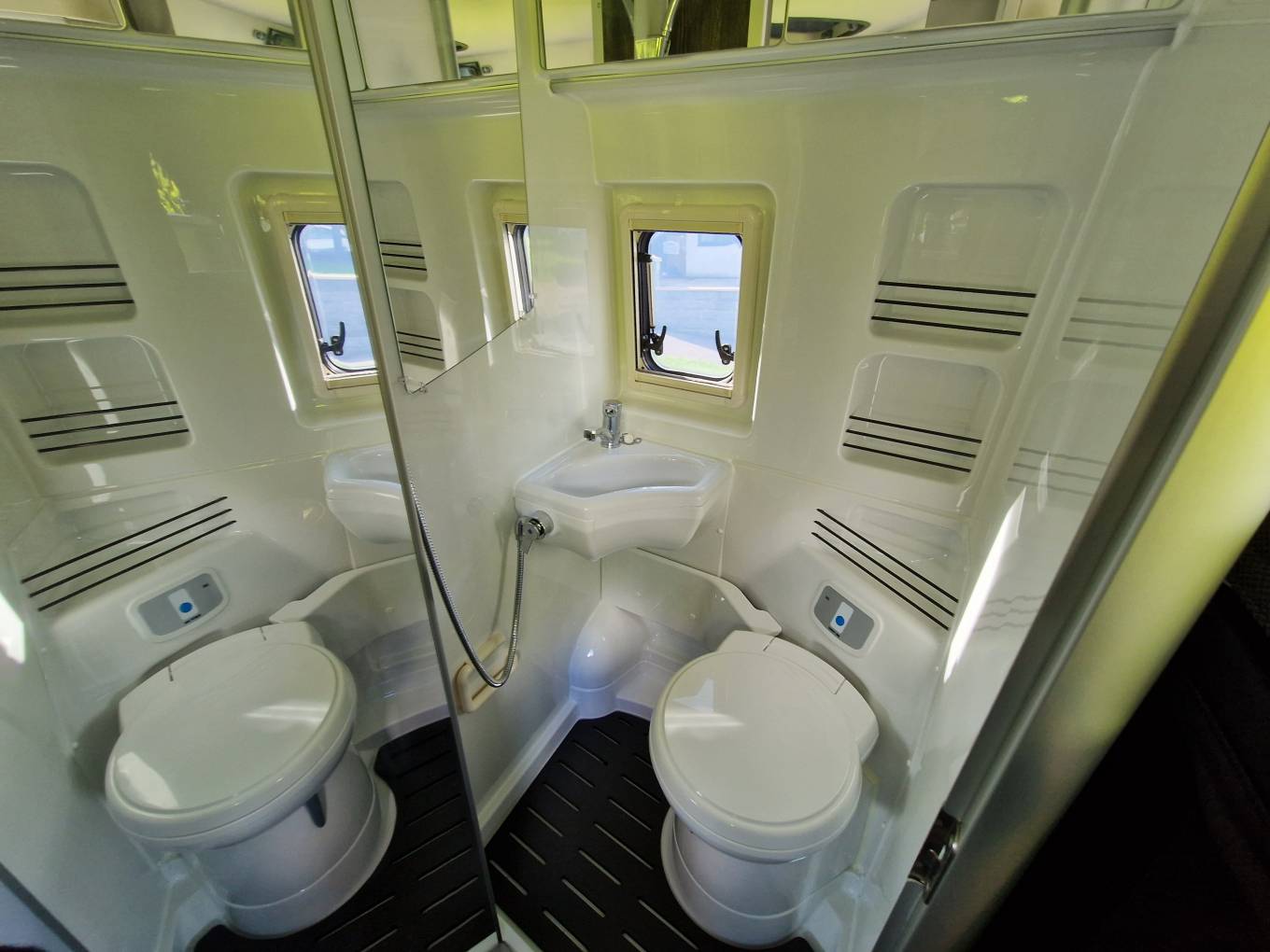 Across from the kitchen area you have the bathroom which again offers you everything you need to refresh after a day of adventure.