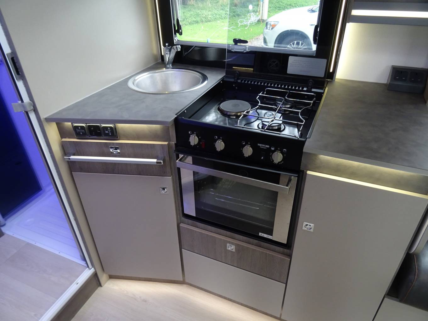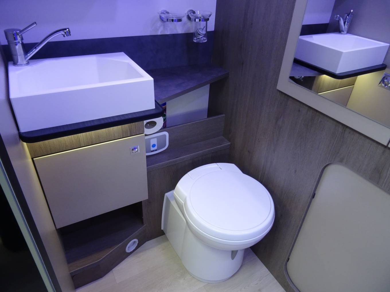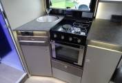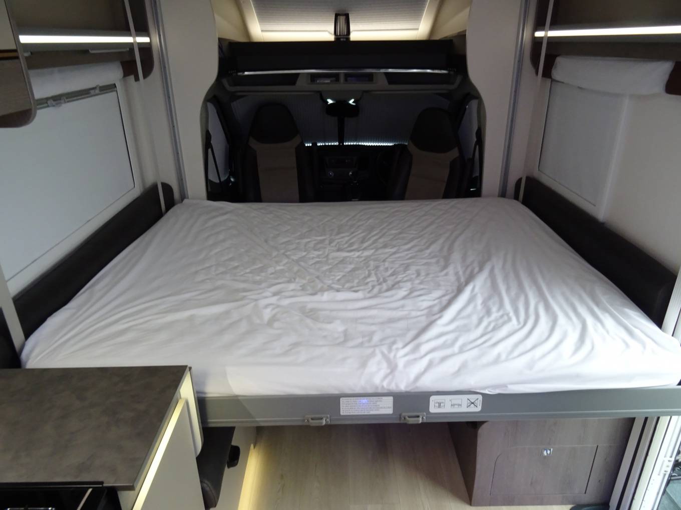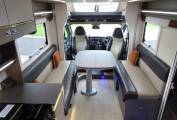 Beautifully appointed luxury motorhome for 2 with additional full travelling seats and double bed for 2 more when required. This is a classy motorhome with subtle colours and lighting and a number of features which make it a stand out from your typical motorhome. On a Ford cab/chassis, the vehicle has an automatic gearbox for the 170 bhp engine. The driver and passenger seats swivel to add to the spacious dining/socialising area with electrically operated and folding dining table, along side the two salon bench seats which conceal two passenger seats with full travelling seatbelts. This area converts to a large comfortable double bed if required. The main sleeping accommodation is in the electrically operated large double bed which is situated above the dining area and stowed during the day to provide full habitation space during non-sleeping time!