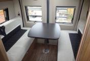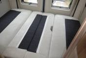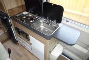 As you step inside you get a feeling for the luxury standard of this motorhome, fitted out with high gloss cabinets through out. The forward seating area compromises of 2 captains chairs and two extra belted seats allowing for 4 travelling seats and a seating area around the table for 4. The rear lounge is fitted out with twin settees that easily make up in to a good sized bed. A 3rd bunk can be made up in the front seating area. The kitchen area is well kitted out with a twin burner gas hob, grill, microwave sink and fridge with ice box. The washroom compromises of a toilet, shower and sink making excellent use of the space available and is in good condition. The motorhome has excellent storage through out for a van of this size including underfloor storage at the rear of the motorhome, a wardrobe, and plenty of overhead cupboards.