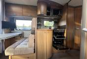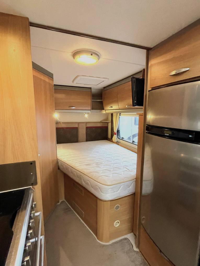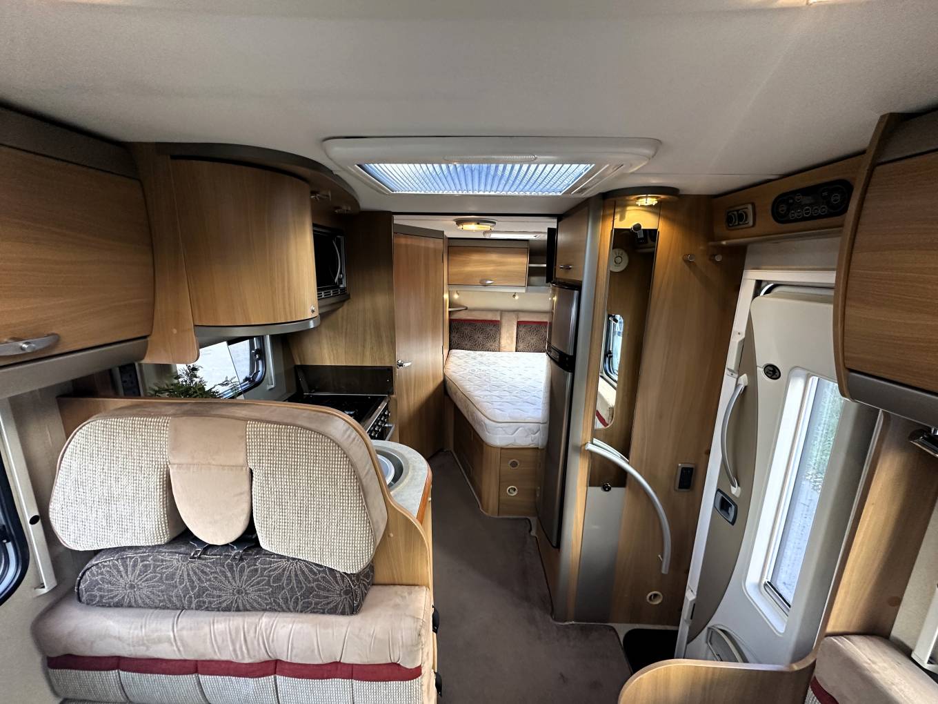 with four travelling seats and rear fixed French bed.